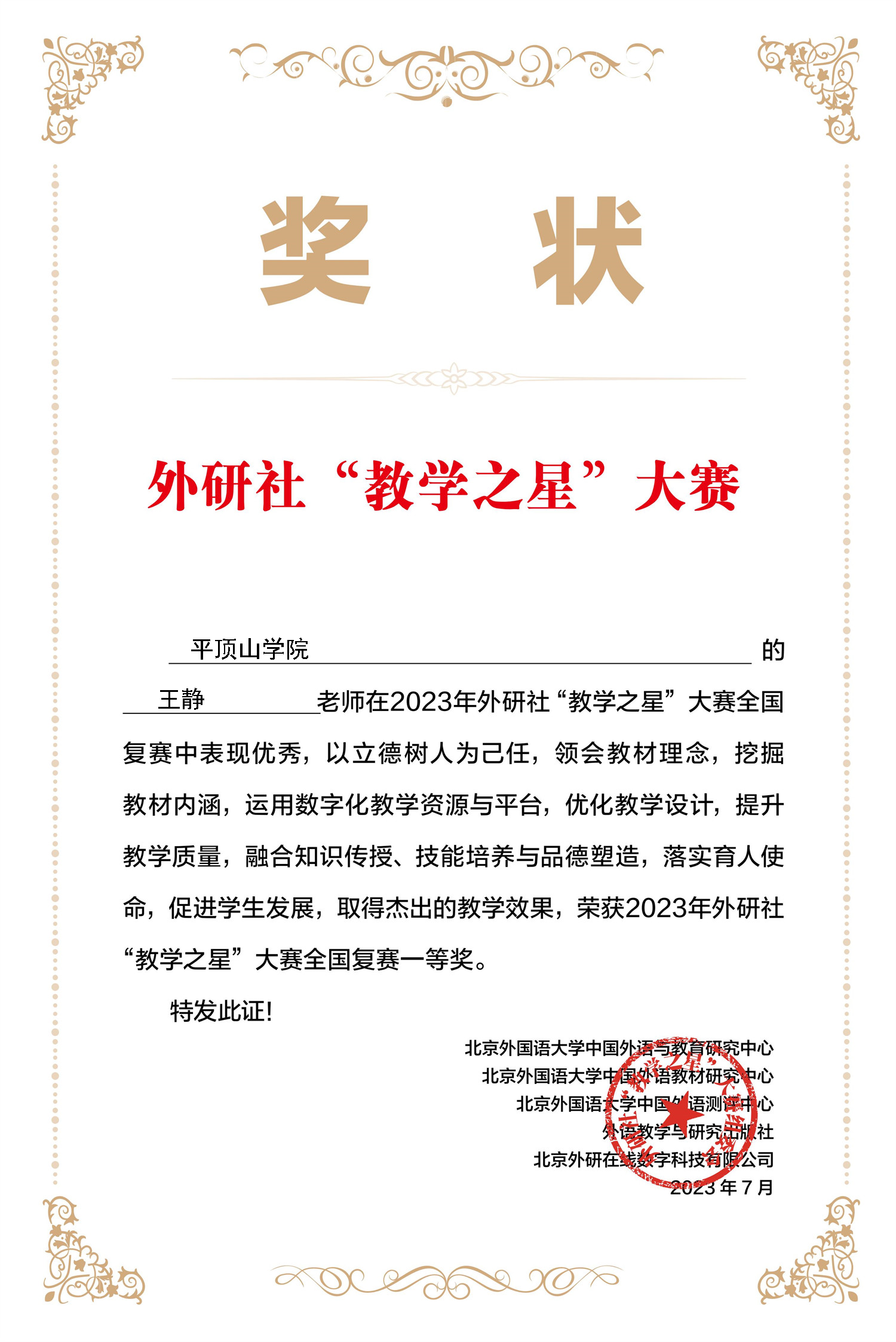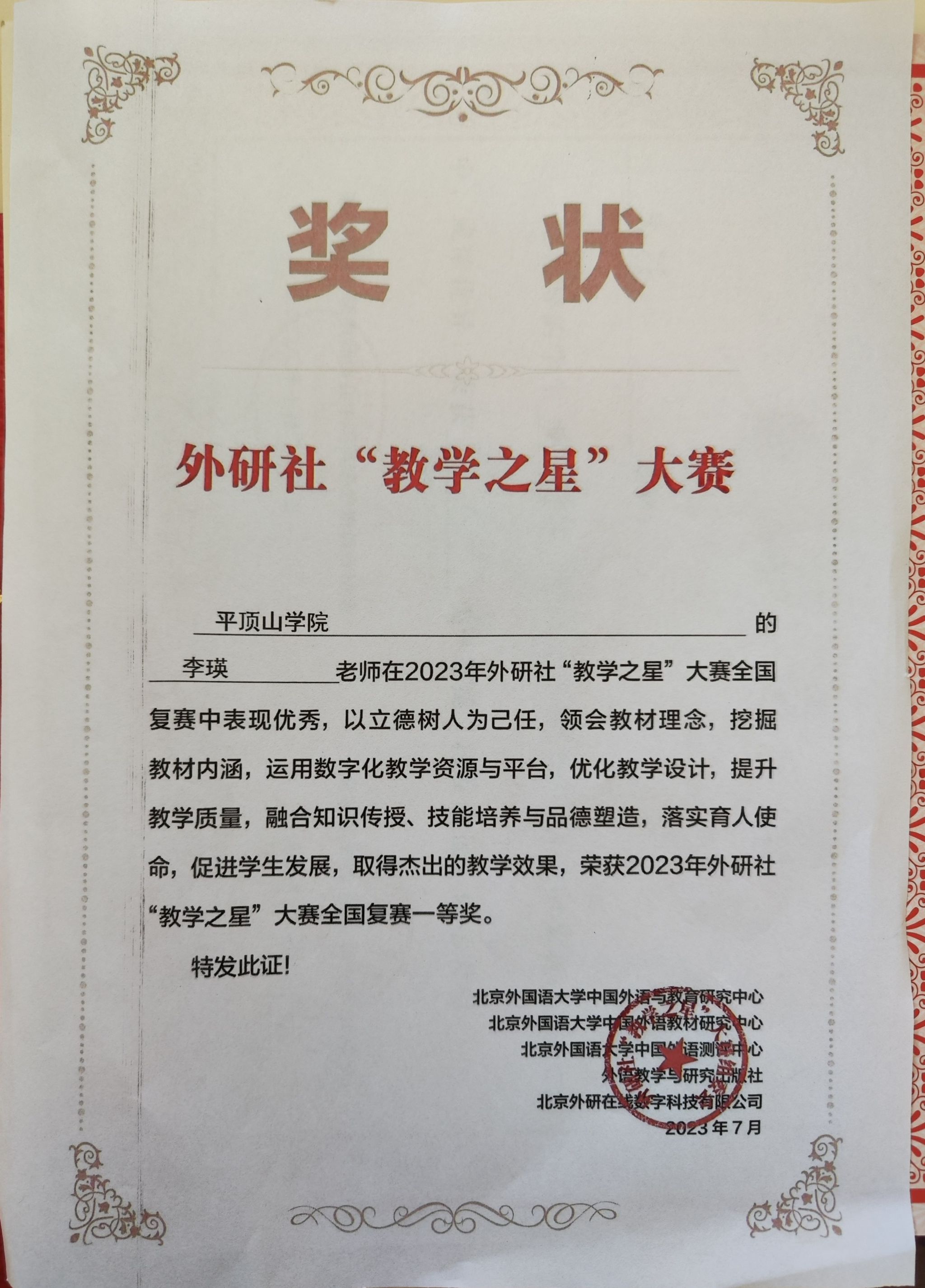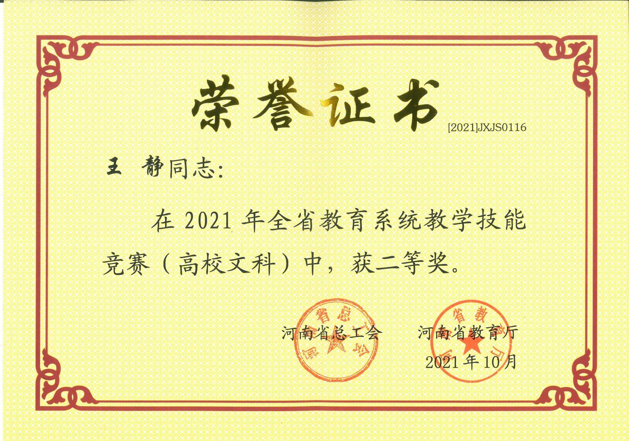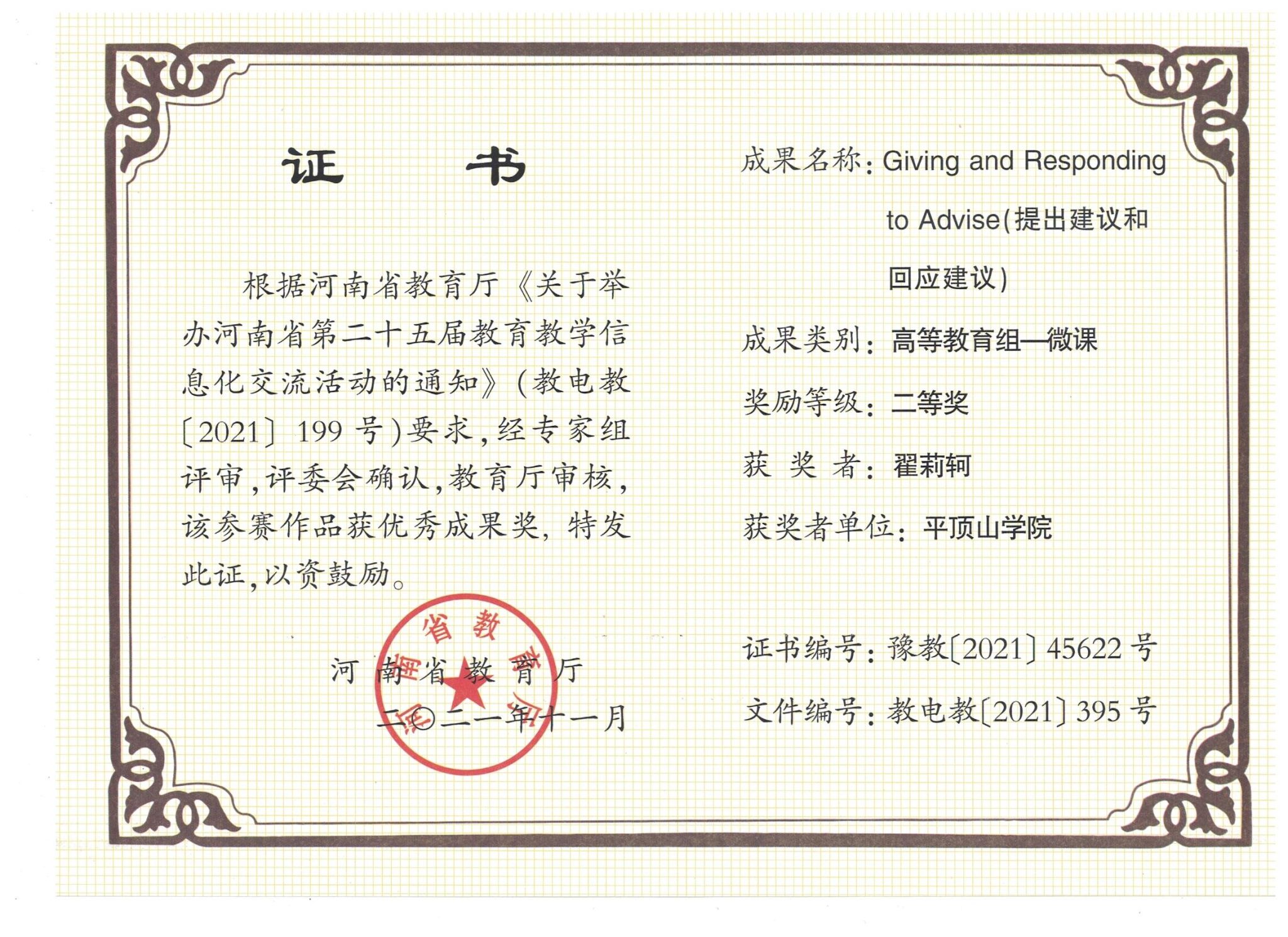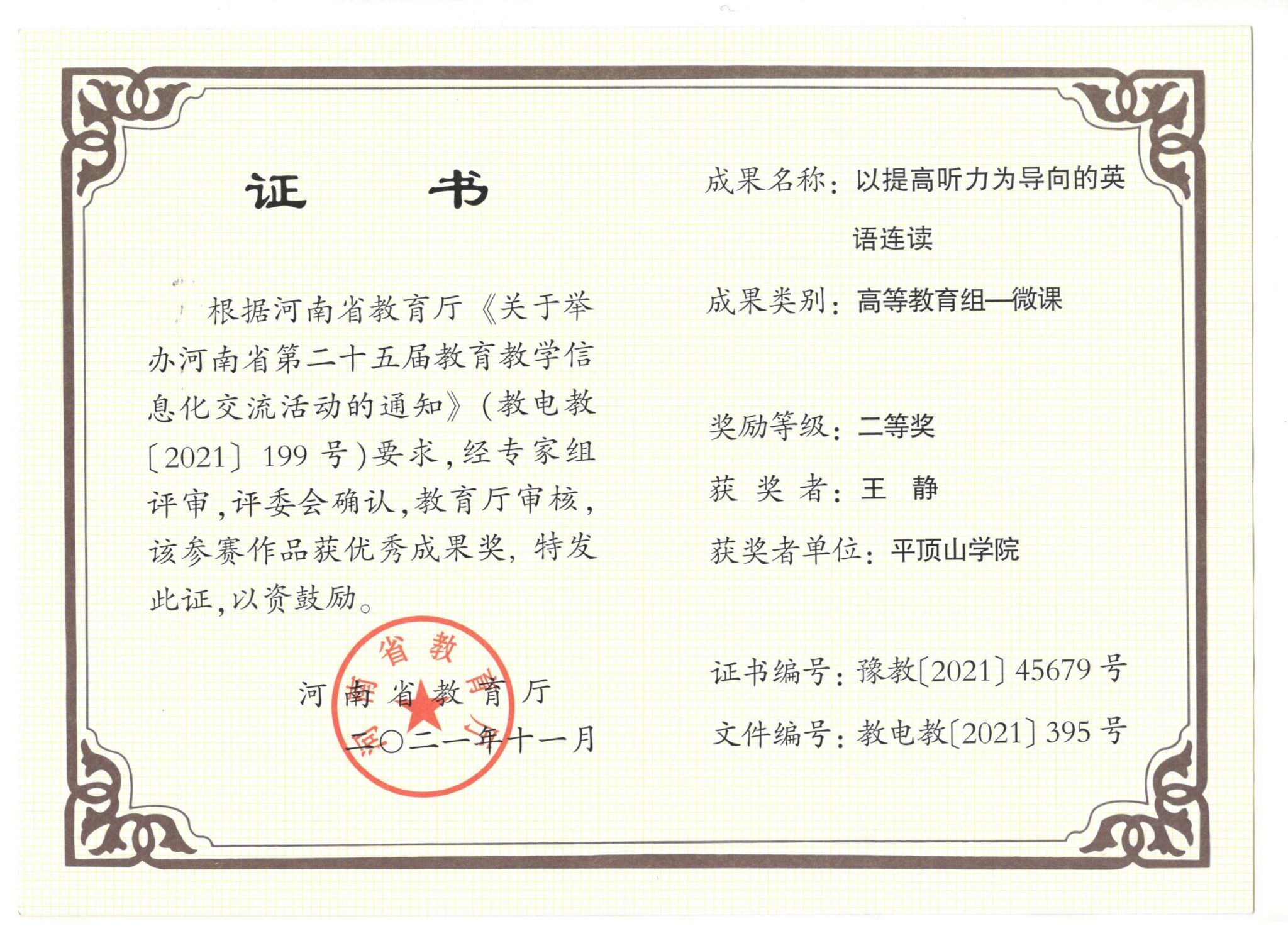 获奖证书