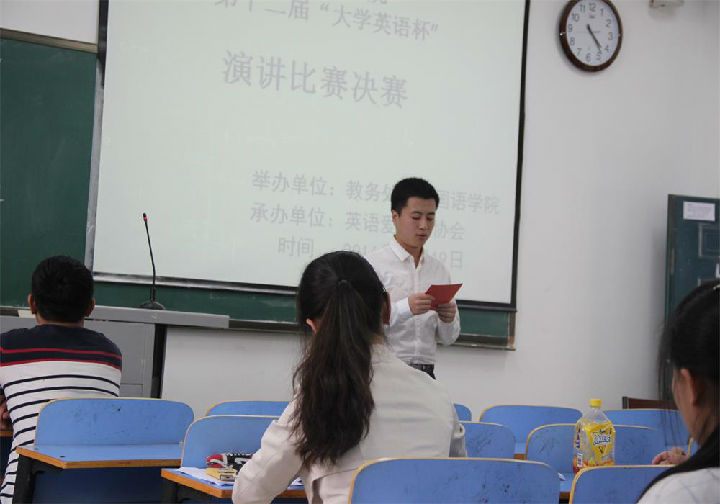 5月19日下午两点钟,best365足球官网第十二届“大学英语杯”演讲比赛决赛在图书馆多媒体教室303拉开了序幕。本次演讲比赛由best365足球官网播音主持艺术专业(英文方向)员工主持,老员工英语爱好者协会协助开展赛事工作。