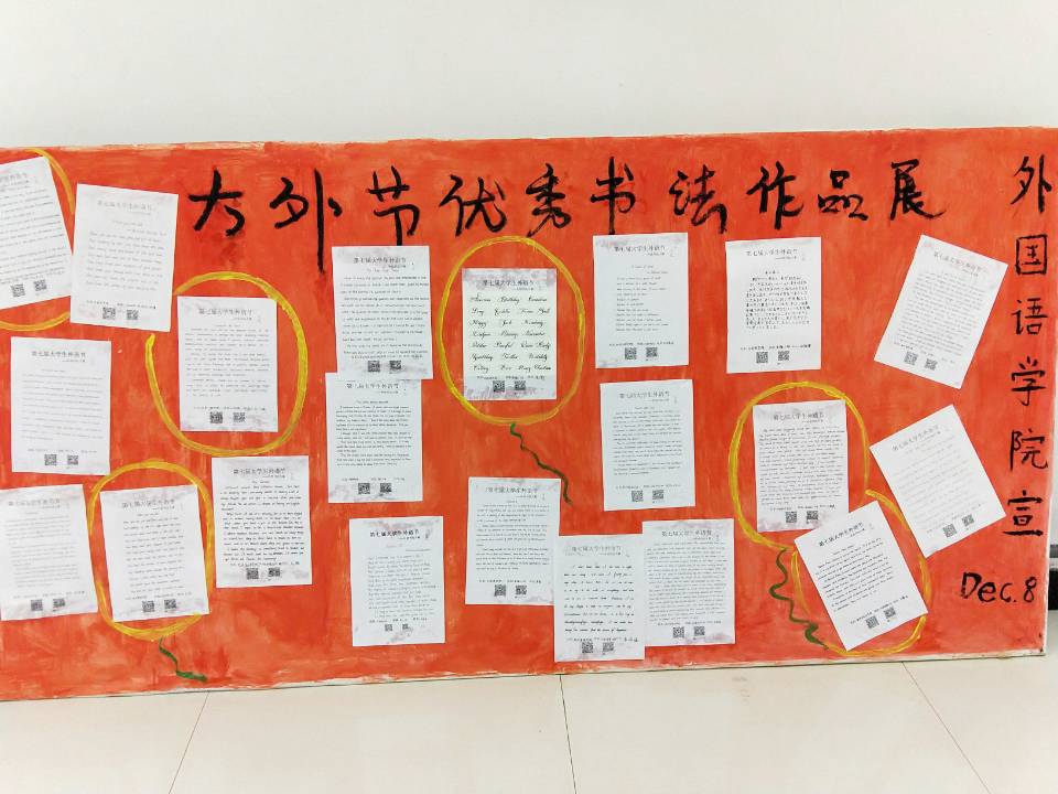 通过宣传和组织申报,截止到12月1日,公司共从17个院系收集了340份书法作品,经过初选、复选两个环节的评选,共选出专业组一、二、三等奖和优秀奖共20名和非专业组一、二、三等奖和优秀奖共32名。best365足球官网大学英语第二教研室参与了本次书法大赛的各项工作,教研室的李黎老师、李晓娟老师、李冰老师和盛楠老师担任了复选环节的评委。本次比赛,不仅给同学们提供了一个充分展示书法才能的机会,也给同学们创造了良好的英语学习氛围。虽然参赛作品中的优秀作品很多,但是不少同学的英文书写还是不够规范,在今后的教学中,承担大学英语课程和英语专业课程的教师有必要在授课过程中增加有关英语书写规范的相关内容,并有意识地引导员工坚持长期练习英语书法。