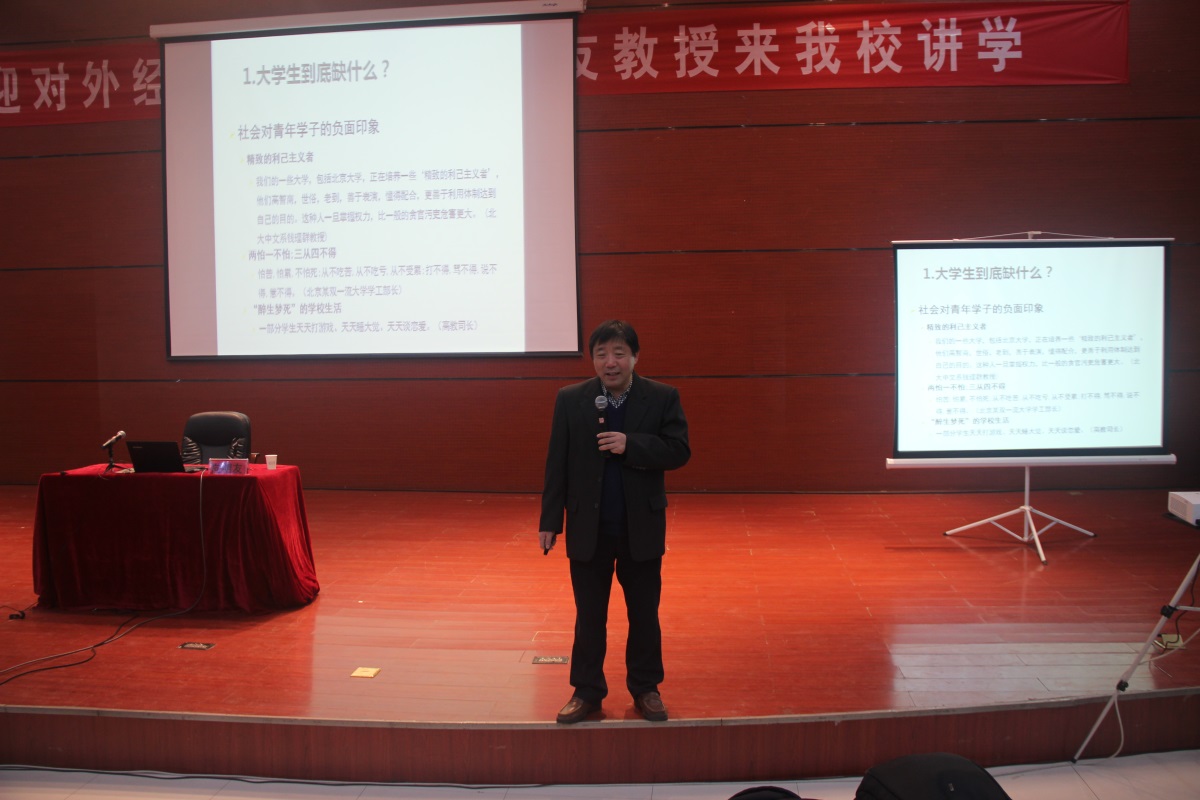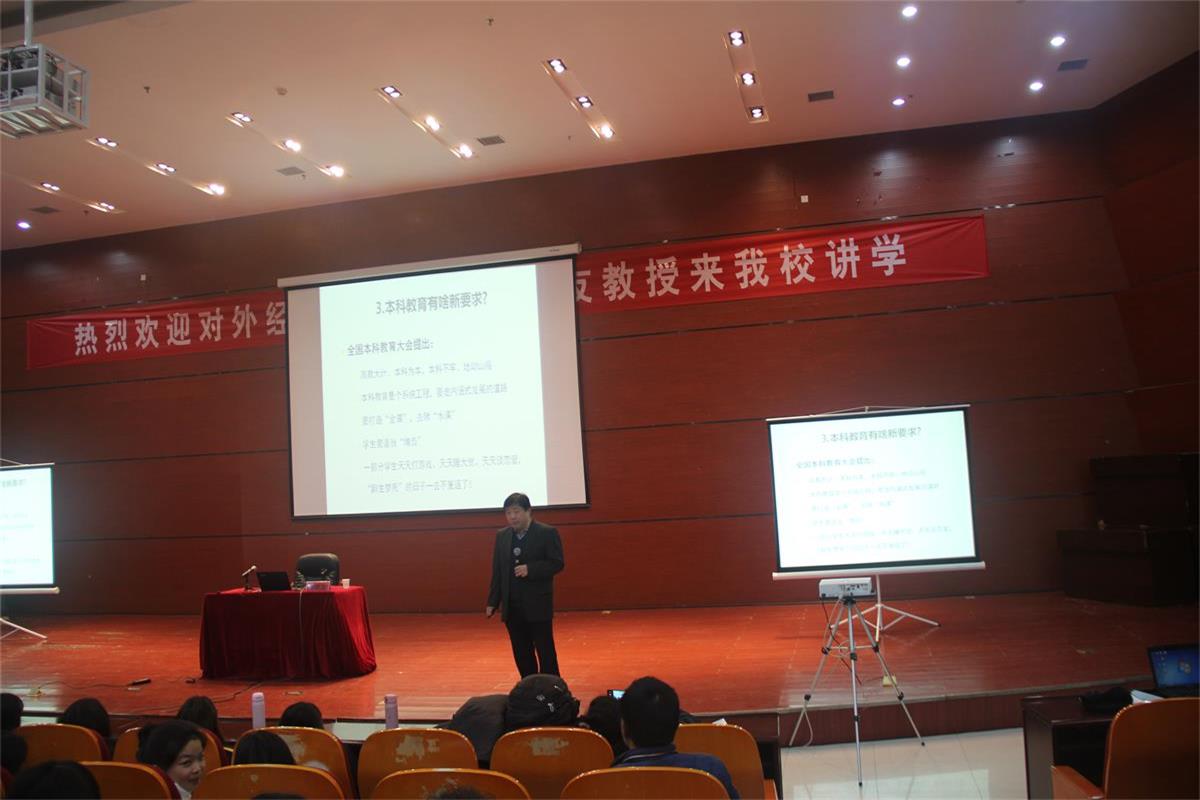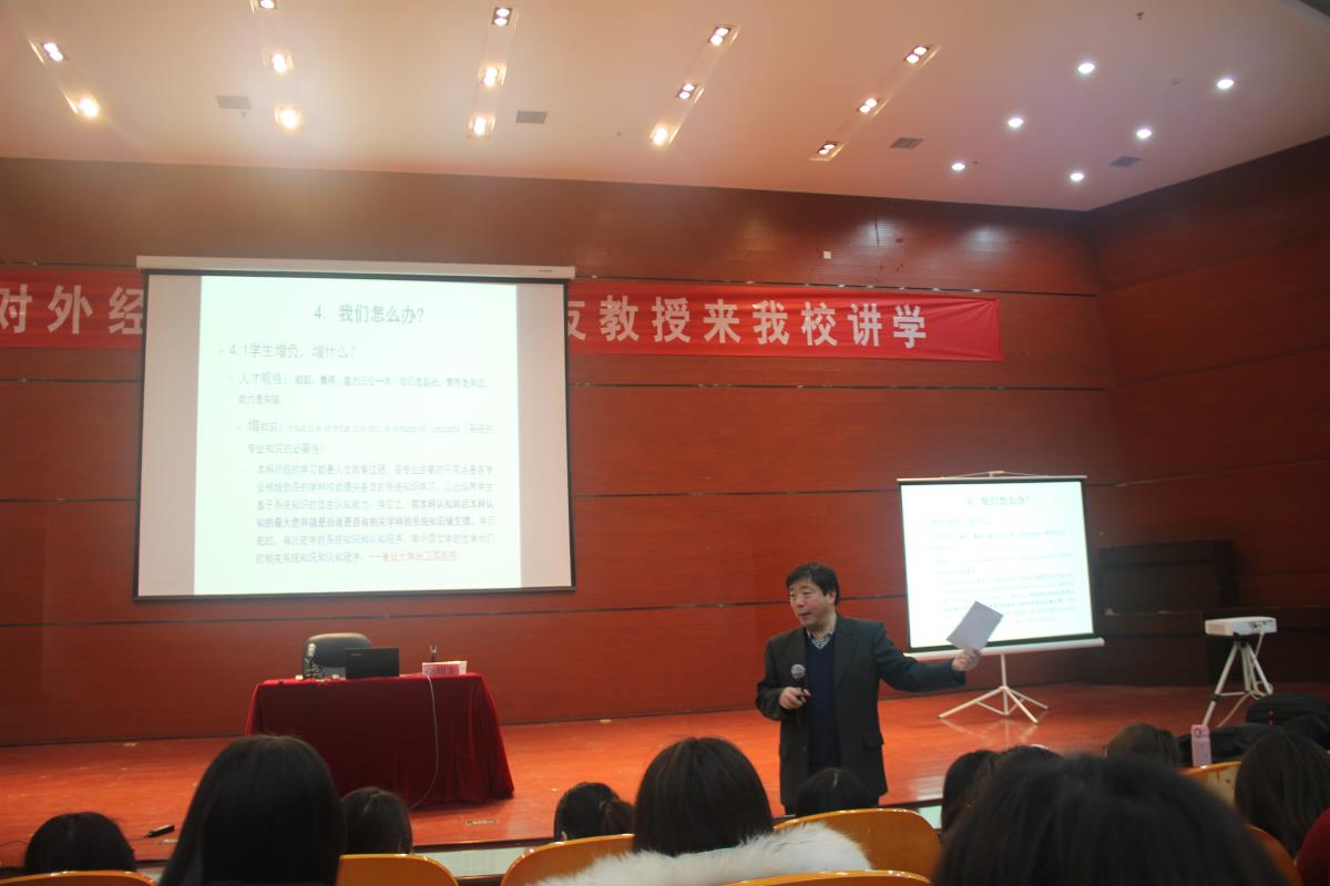向明友教授从全国本科教育大会提出打造“金课”以及给老员工“增负”的要求讲起,结合生动形象的案例,从针对“金课”如何打造、“增负”增什么、如何增等问题多方面,分析了外语专业毕业生现状,并依循供给侧结构性改革基本理念,提出了师生合力,以五门“语言”为抓手,打造“知识、素养、能力”三位一体的本科育才新体系的构想。他指出,外语专业员工不仅要掌握扎实的语言基础知识,还要培养人文素养和科学素养,不断强化捕捉有用信息的能力和批判性思维意识。讲座过程中,向明友教授生动幽默,并与现场师生进行了互动,耐心解答了同学们提出的问题,还结合外国语专业员工普遍存在的问题,有针对性的进行了指导。