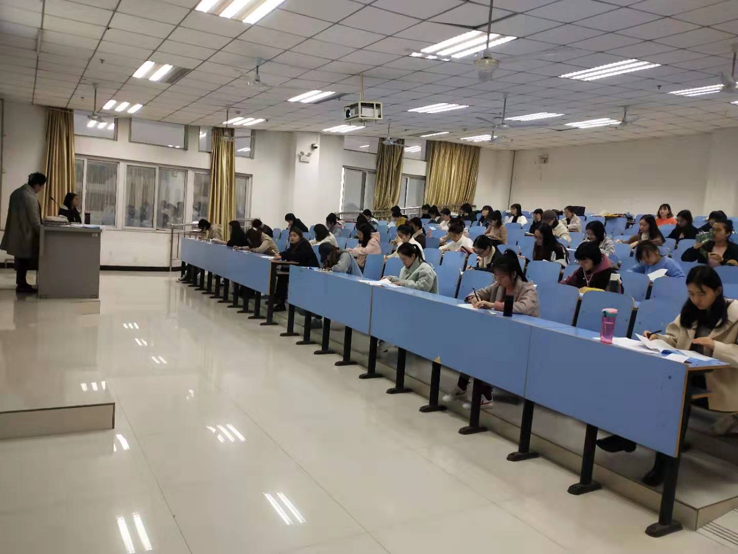 全国高师员工英语教师职业技能竞赛竞赛分初、决赛进行。初赛为笔试 (150 分钟), 试题内容涵盖宏观教育理念、 外语教学理论修养、 英语教学技能、 英语语言知识 (含听力) 四个方面。竞赛试题分为一级和二级, 一级试题侧重于小学英语教学, 难度适合专科员工及本科一、 二年级员工, 二级试题侧重于中学英语教学, 难度适合本科三、四年级员工及硕士研究生。本次竞赛一级报名127人,二级报名101人,分设四个考场。best365足球官网十分重视本赛事,林萍经理担任主考,对考务工作进行了指导,并巡视了考场。