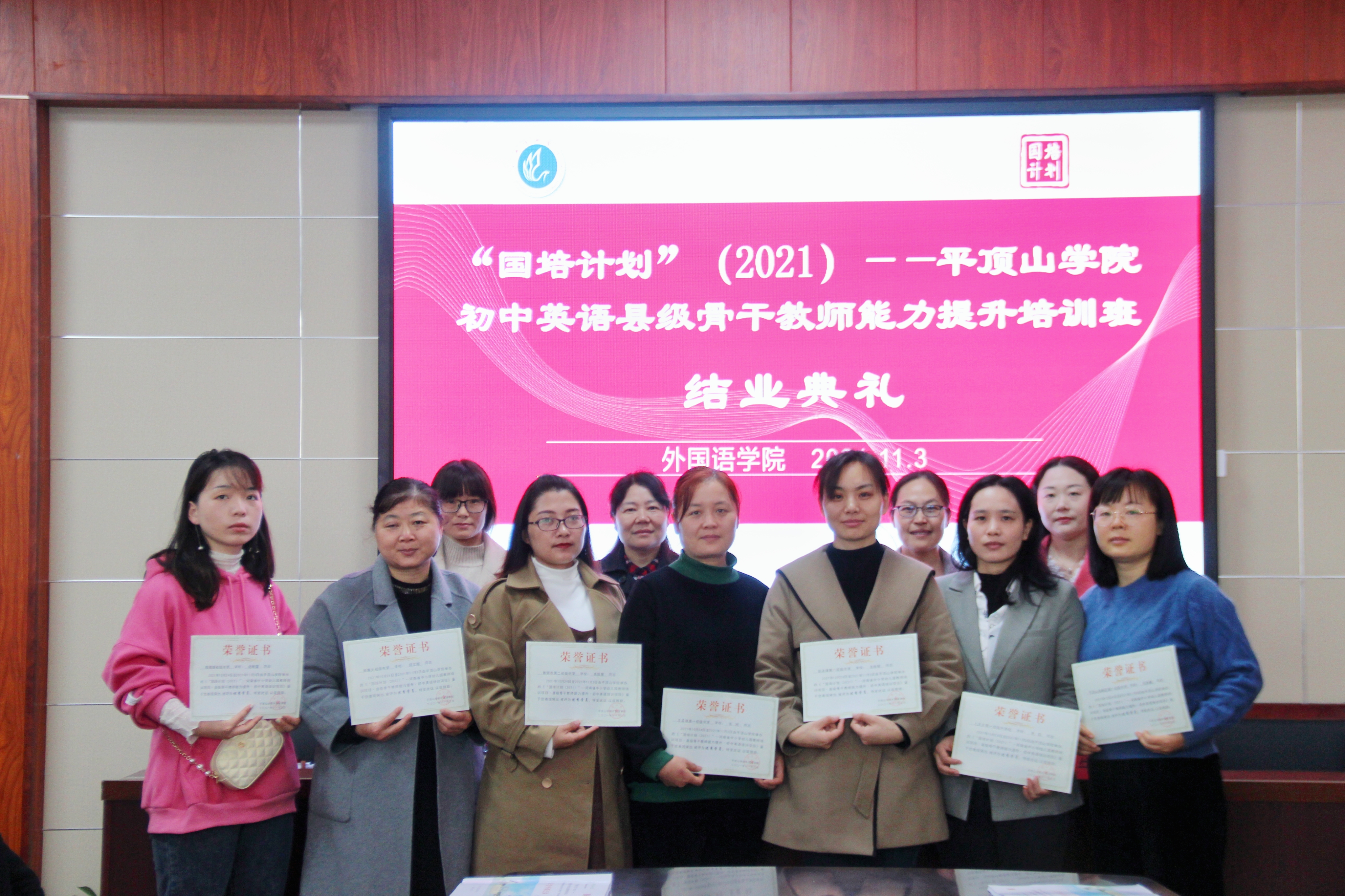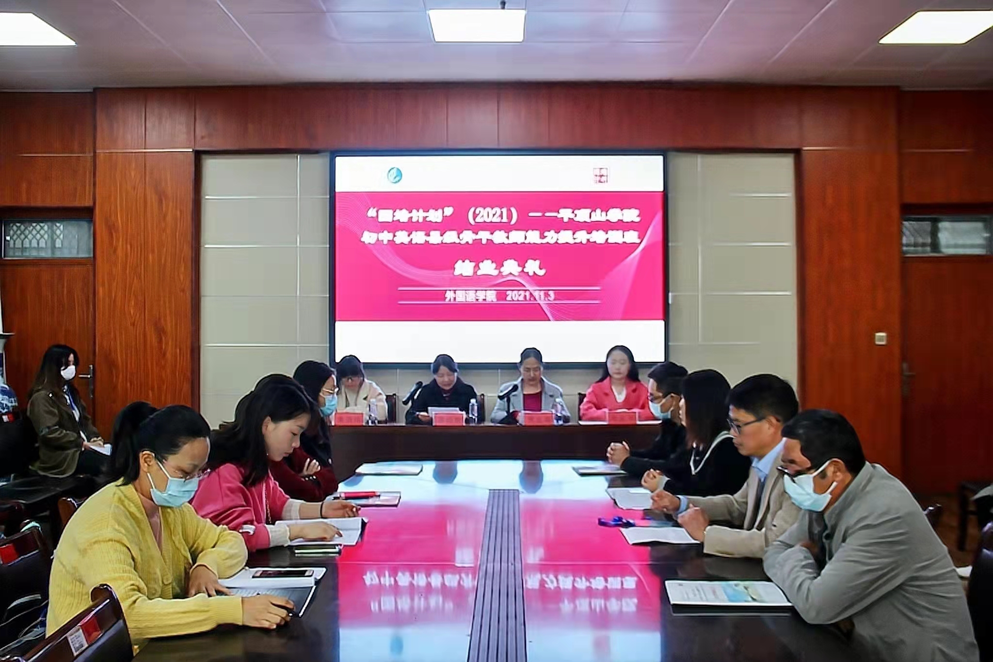 11月3日上午,best365足球官网“国培计划”(2021)—河南省中小学幼儿园教师培训项目•县级骨干教师(初中英语)能力提升培训班结业典礼在图书馆L708举行。best365足球官网经理蒋领敏、副经理贾宏春、国培班学业班主任朱清伟、生活班主任牛乐平及国培班全体学员出席本次典礼。