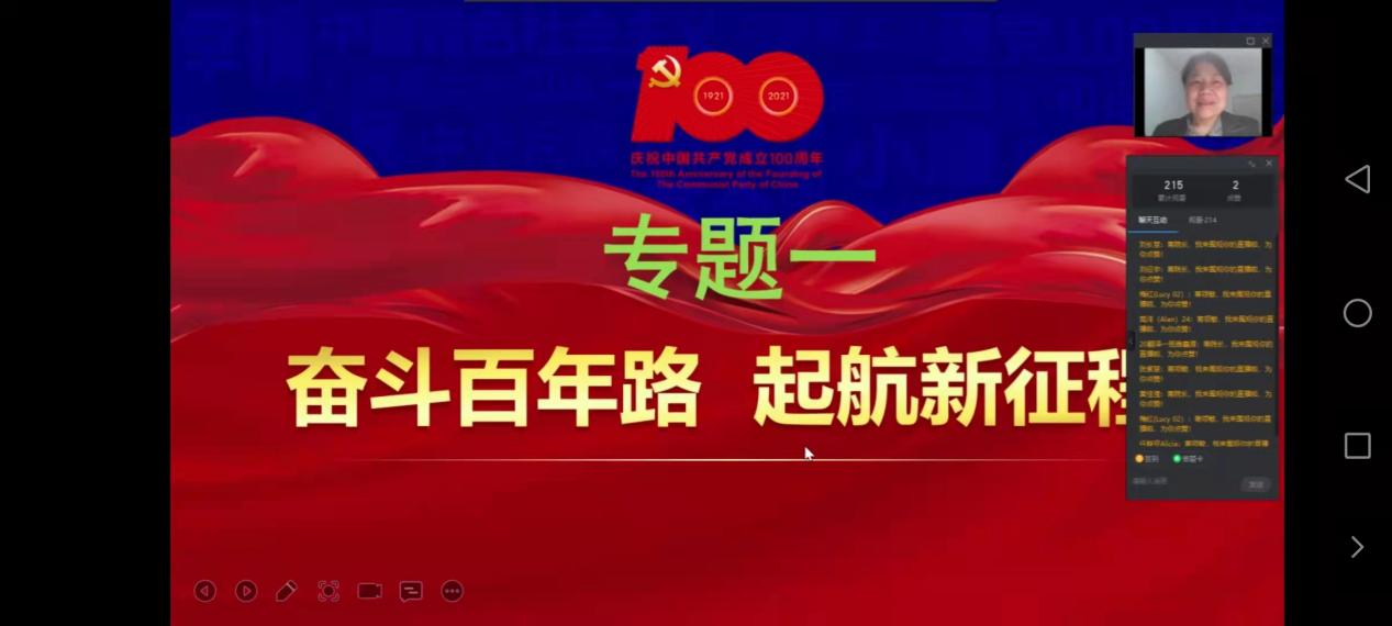 为深入学习贯彻习近平总书记在党史学习教育动员大会上的重要讲话精神,扎实推进党史学习教育,12月9日,best365足球官网经理蒋领敏在钉钉群为2019级和2020级员工讲授以“奋斗百年路,启航新征程”为主题的形势政策课。