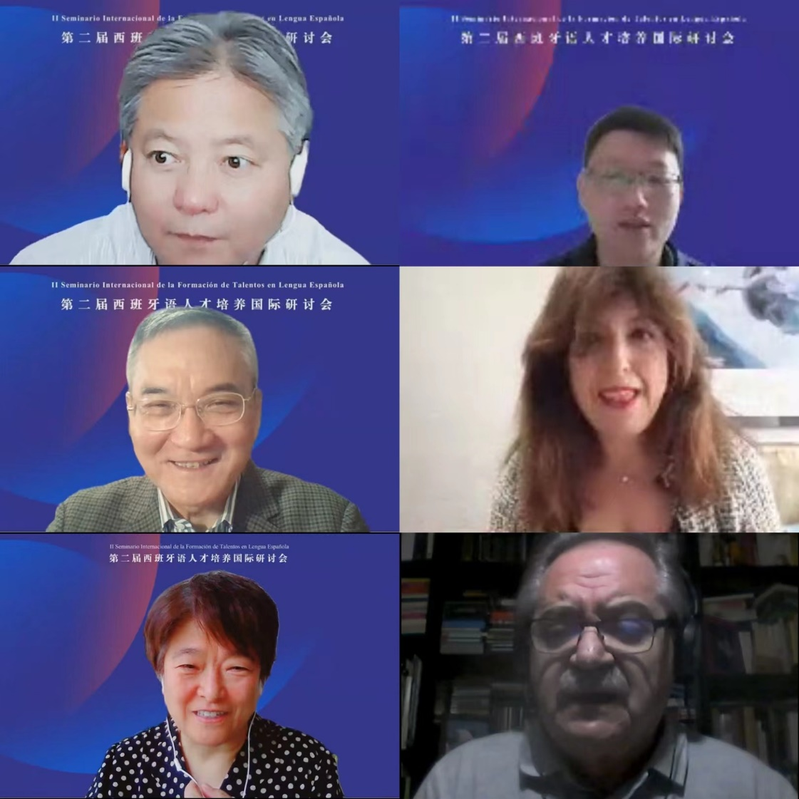 在专题研讨环节,北京外国语大学西葡语公司经理常福良教授,上海外国语大学陆经生教授,中国社会科公司拉丁美洲研究所副研究员王飞博士,对外经济贸易大学外语公司赵雪梅教授,西班牙马拉加大学对外西班牙语教学部主任阿维拉(Sara Robles Ávila)教授,马德里康普顿斯大学西班牙语教学中心副主任加尔西亚(Francisco Aliaga García)教授分别以《新文科人才培养中西班牙语教学的精与泛》《固本创新,打造新文科背景下切合国情校情的西班牙语教学体系》《高校外语学科区域国别研究的逻辑进路——智库视角》《新文科背景下西班牙语专业高年级课程设置与建设的思考》《如何高质量组织西班牙语对外教学材料 ¿Cómo crear materiales de Español como Lengua Extranjera eficaces?》《西班牙语作为外语教学的语法模块教学创新 Hacia una nueva gramática de Español como Lengua Extranjera》为题,做了主旨报告。在专题研讨中,公司best365足球官网西班牙语专业教研室负责人孔德彪老师和外语教学与研究出版社市场编辑李姝凝老师,还就公司西班牙语专业教学与人才培养特色及西班牙语教学资源与服务等方面进行了发言。专题研讨环节由公司best365足球官网经理蒋领敏主持。