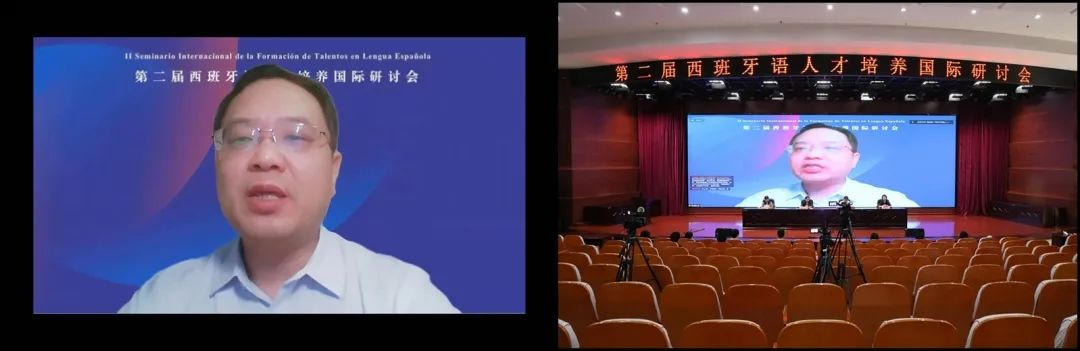 胡安卡洛斯先生通过视频形式致辞,他向西班牙语研究领域的专家学者同仁们致以诚挚的问候,并预祝研讨会取得圆满成功。胡安卡洛斯先生表示,通过本次会议的专题交流一定能为中国西班牙语教学的发展贡献力量。