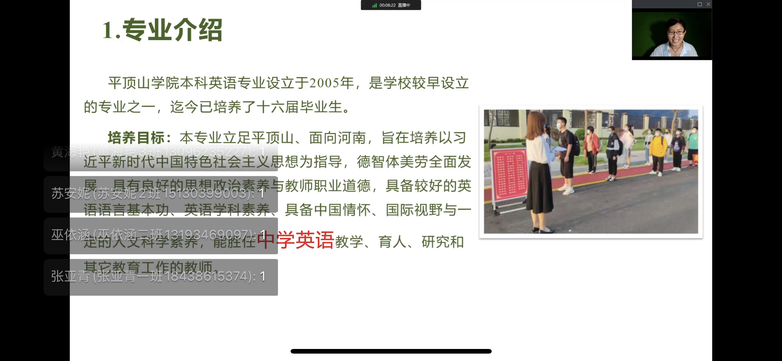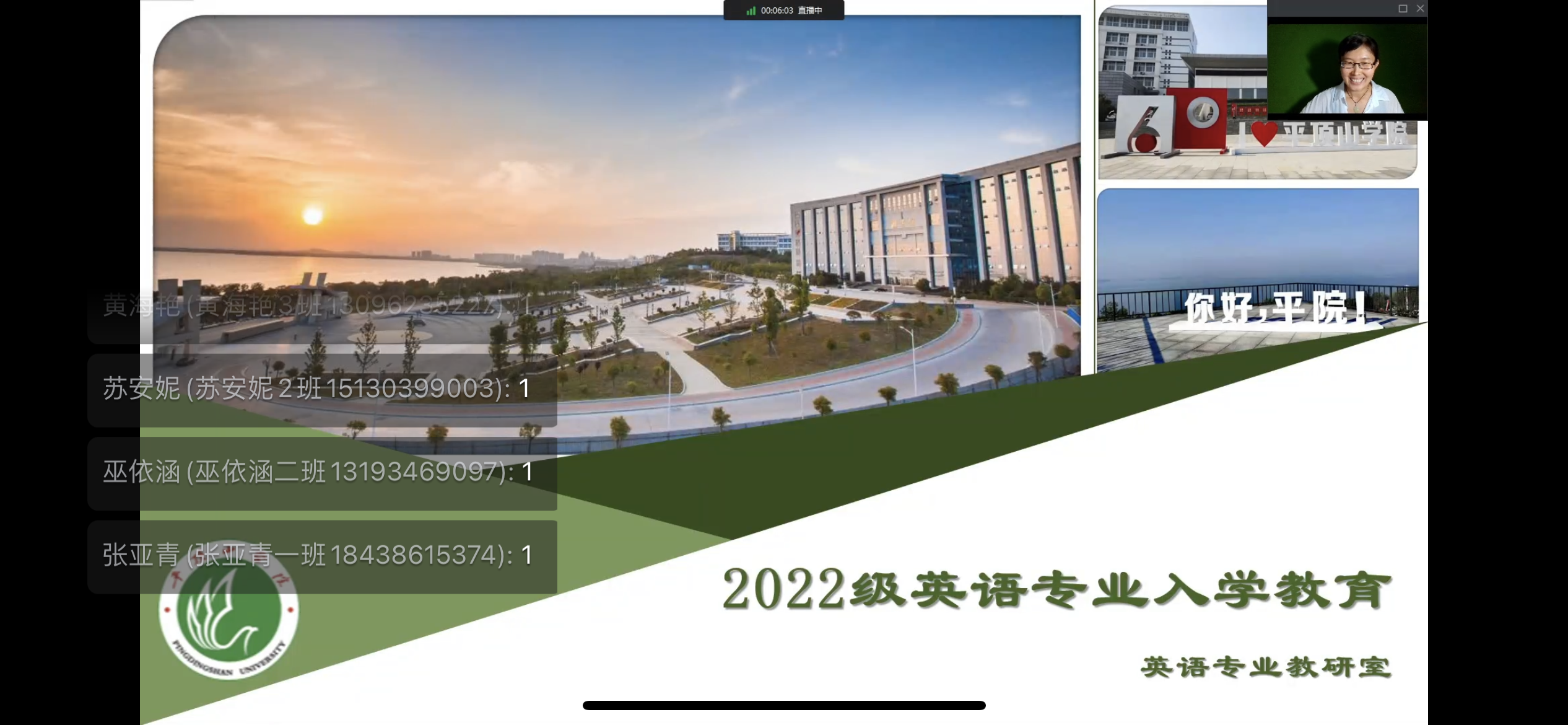 为使新生尽快适应新的学习环境,了解英语专业学习内容,更快地融入best365足球官网大家庭,更快适应专业学习,明确专业方向前景,9月8日上午,best365足球官网英语专业教研室通过钉钉直播、视频等形式开展2022级英语专业新生入学教育。本次讲座由best365足球官网英语教研室主任都婧婧主持,best365足球官网副经理贾宏春、教师孙嫚嫚、英语专业优秀毕业生代表及2022级英语专业全体新生参加。