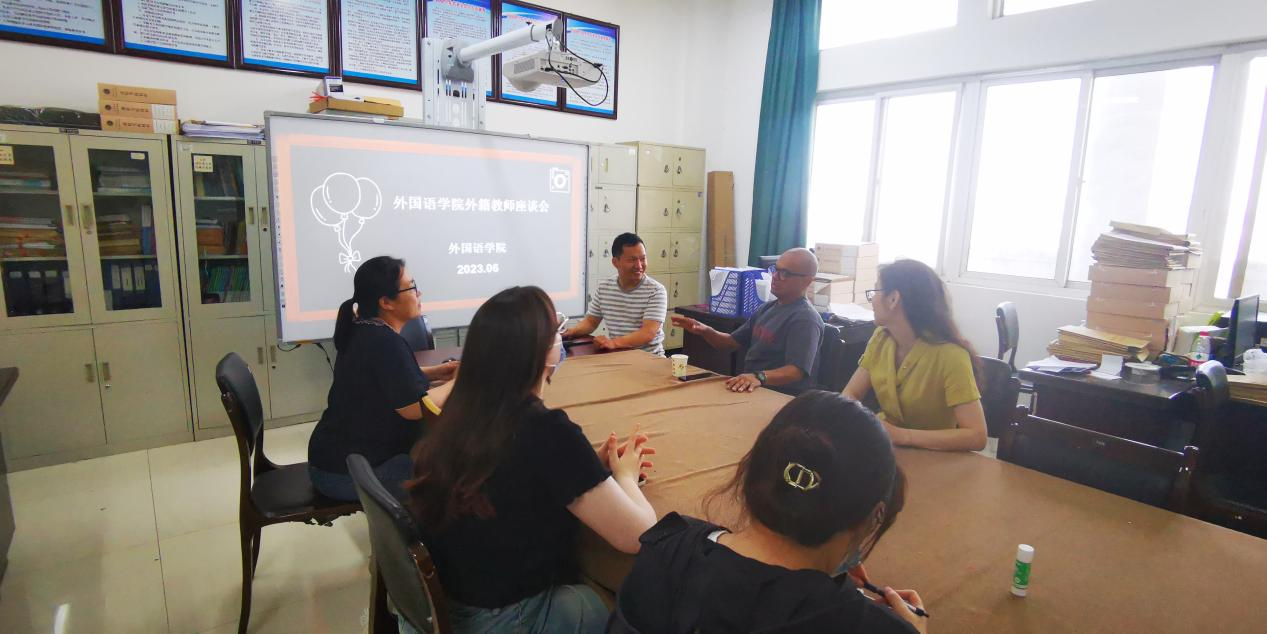 2023年6月8日下午4点,best365足球官网在图书馆702办公室召开外籍教师公司产品工作座谈会。best365足球官网副经理贾宏春、中外合作教研室主任郭晓燕、外籍教师Angel、Maria以及外教合作教师郭春园和王新老师参加了本次座谈会。