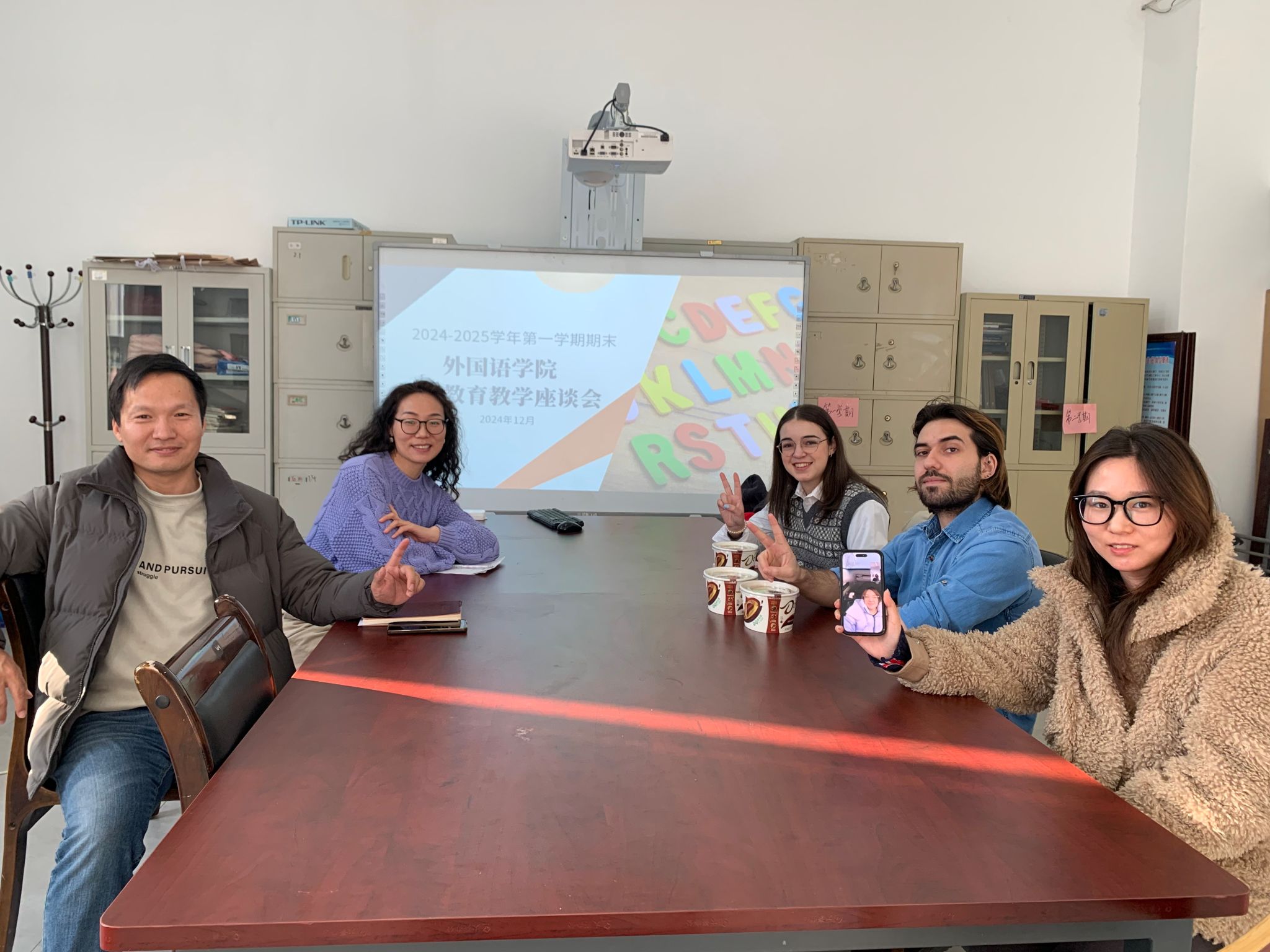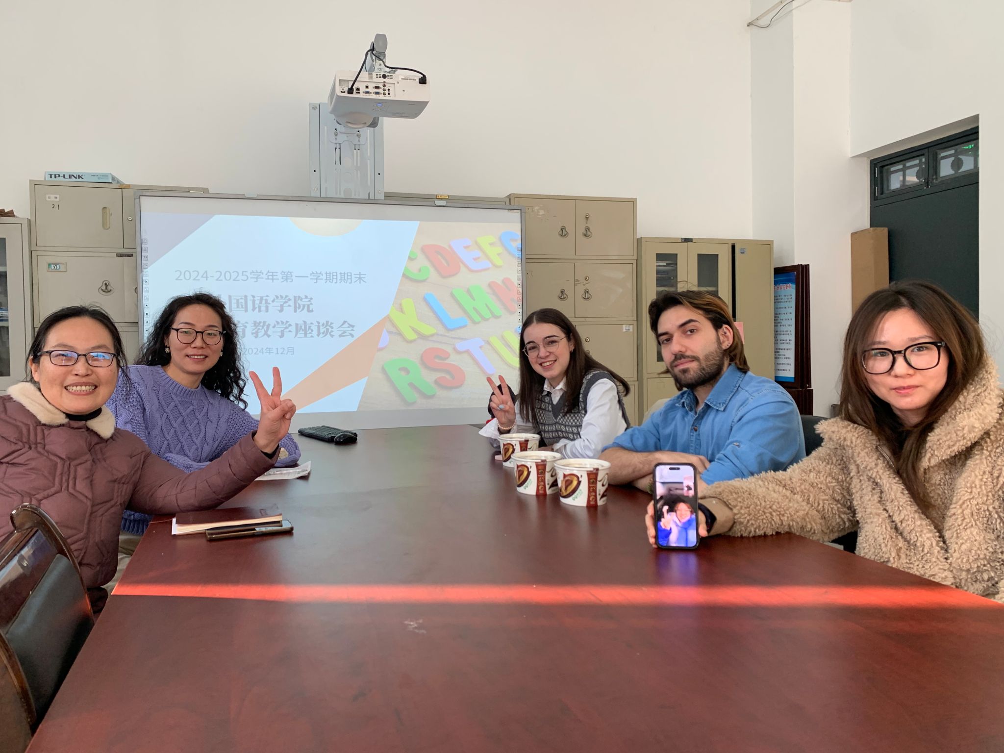 接下来,贾经理重申了期末考试的相关规定,并听取了外籍教师的教学心得与体会,共同交流了对课程教学及考核的想法。