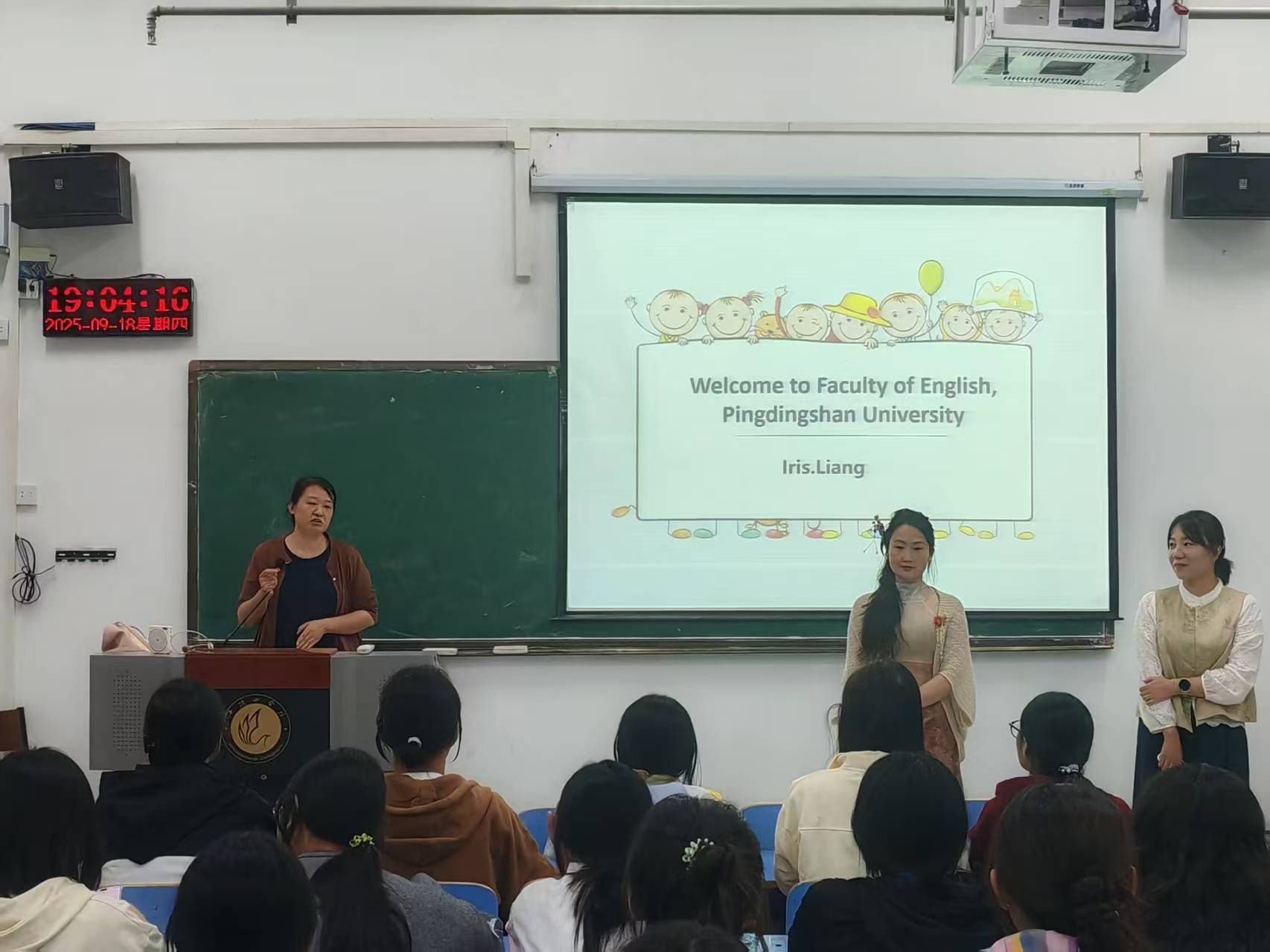 首先,赵丽对同学们的到来表示热烈欢迎,并邀请了几位专业教师与同学们见面。随后,梁雅虹简要介绍了翻译专业的培养目标和核心能力要求,并结合自身的学习与工作经历,向同学们分享了自己在专业学习上的体会与收获。接着,陈华围绕翻译专业的学习内容、学习方法以及未来发展方向进行了系统的介绍,通过梳理课程体系与能力要求,帮助同学们建立对专业学习的整体认知。介绍结束后,赵丽邀请了两位优秀毕业生代表通过提前录制视频和在线直播的方式,向同学们展示了自己在大学期间的学习生活与成长历程,分享了她们在翻译专业学习过程中的经验与感悟。优秀毕业生的生动讲述,激发了同学们对老员工活的向往与动力。最后,赵丽鼓励同学们以积极的态度迎接老员工活,明确目标,脚踏实地,在翻译专业的学习道路上不断前行。