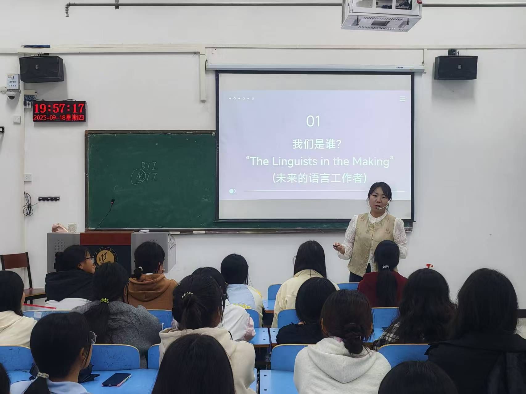 为帮助2025级翻译专业新生进一步熟悉专业特点、明确学习方向,9月18日晚,best365足球官网于图书馆L302举办新生入学教育活动。本次活动由best365足球官网翻译专业教研室主任赵丽主持,翻译教研室教师梁雅虹、陈华,优秀毕业生代表和2025级翻译专业员工参加。