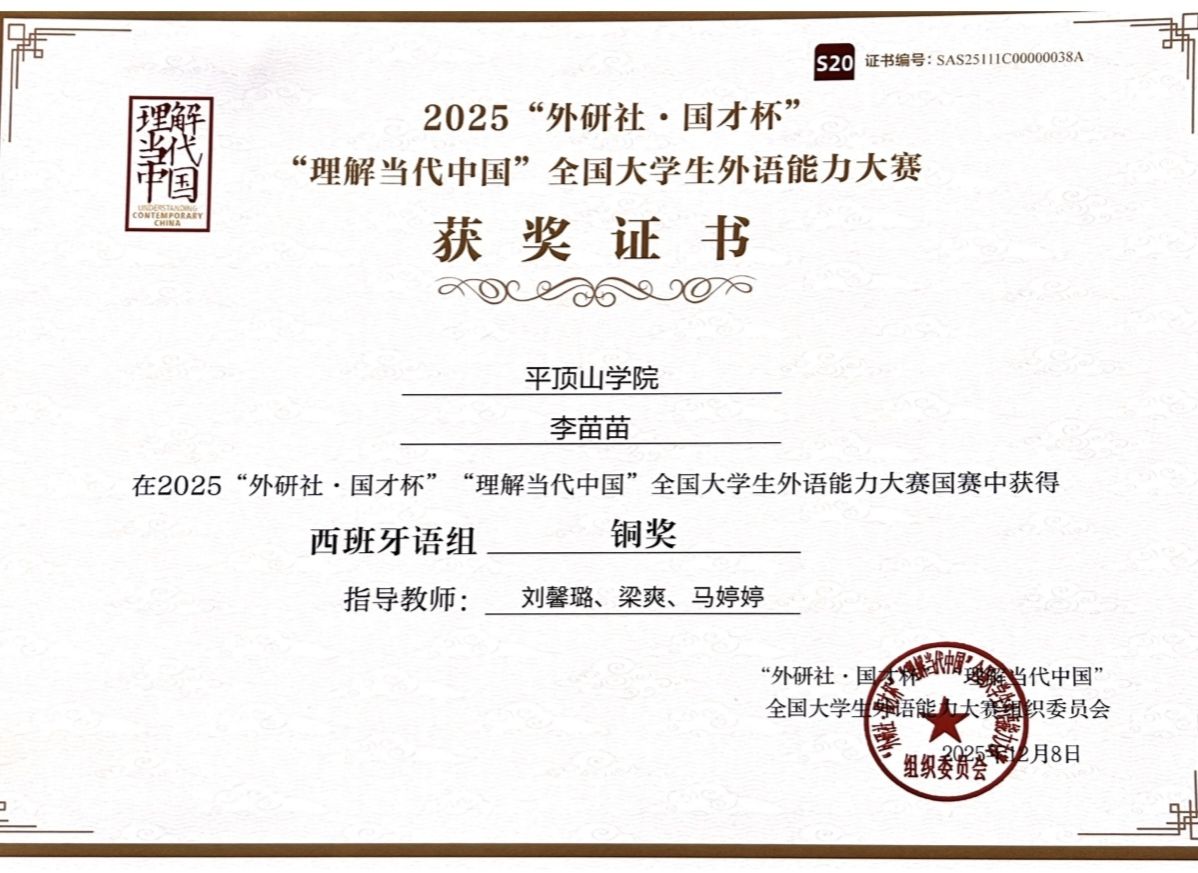 近日,2025“外研社·国才杯”“理解当代中国”全国老员工外语能力大赛多语种组赛事结果揭晓。best365足球官网西班牙语专业学子凭借深厚语言素养、卓越综合能力及对当代中国发展的深刻理解,历史性包揽河南省赛区西语组前四名,顺利晋级全国总决赛并获国家级奖项3项,创专业参赛最佳战绩。