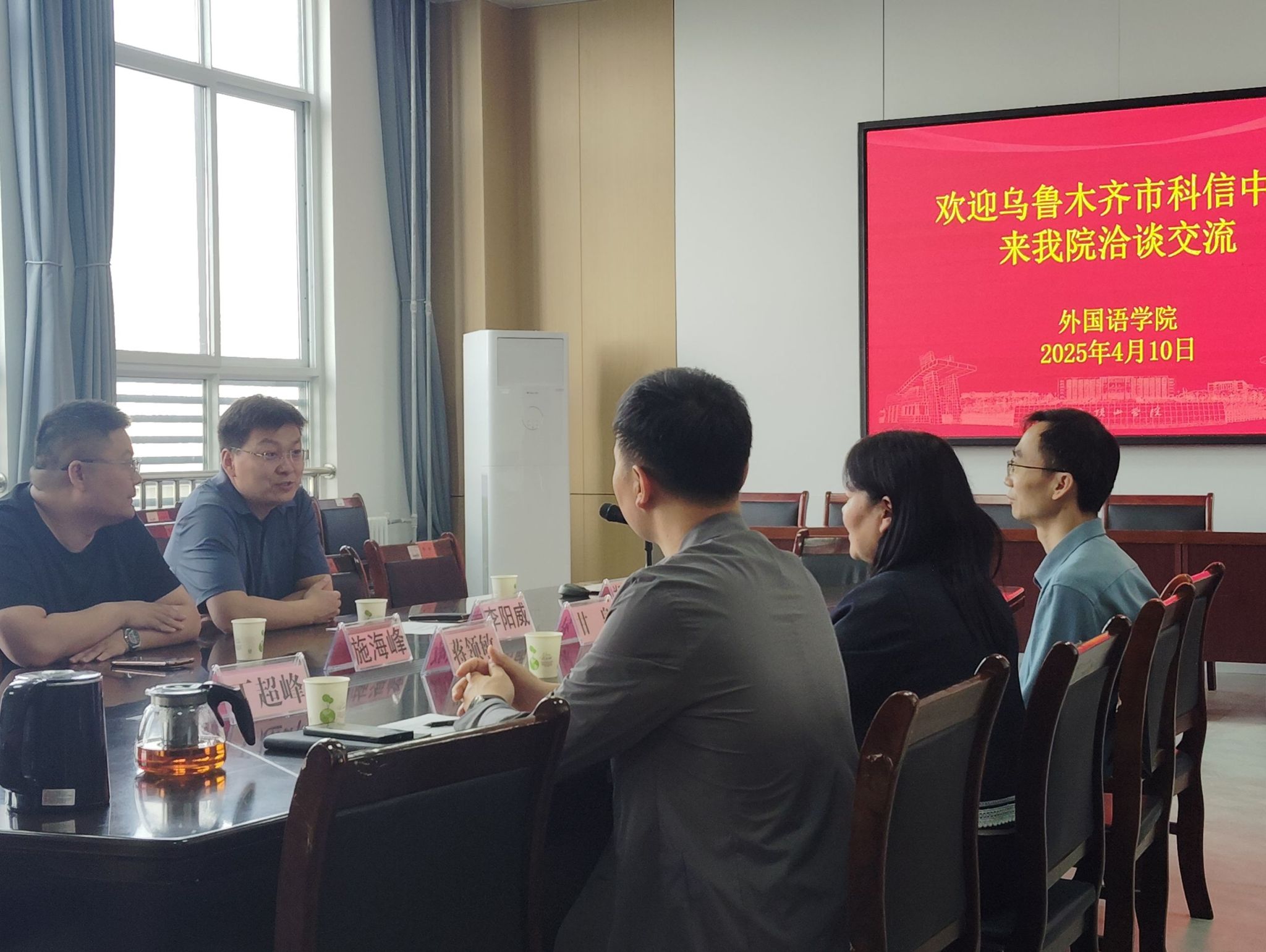 4月10日,乌鲁木齐市科信中学董事长李阳威、副董事长施海峰和教师郑佳晨一行到公司考察交流,开展毕业生招聘,双方就共建教育实践基地达成合作共识。公司党委书记甘泉、经理蒋领敏出席活动,副经理丁超峰主持座谈。