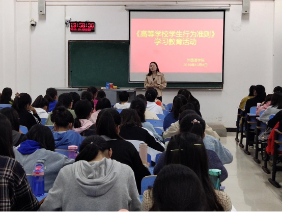 为全面贯彻党的教育方针,加强高等公司员工思想政治教育工作,培养青年老员工的优良品德,10月8日晚7点,公司于图书馆L503、L410、教学楼3106、4405集中组织员工共同学习《高等公司员工行为准则》,19级全体同学参加了此次活动,辅导员牛乐平出席了此次活动,活动由各班班长主持 。