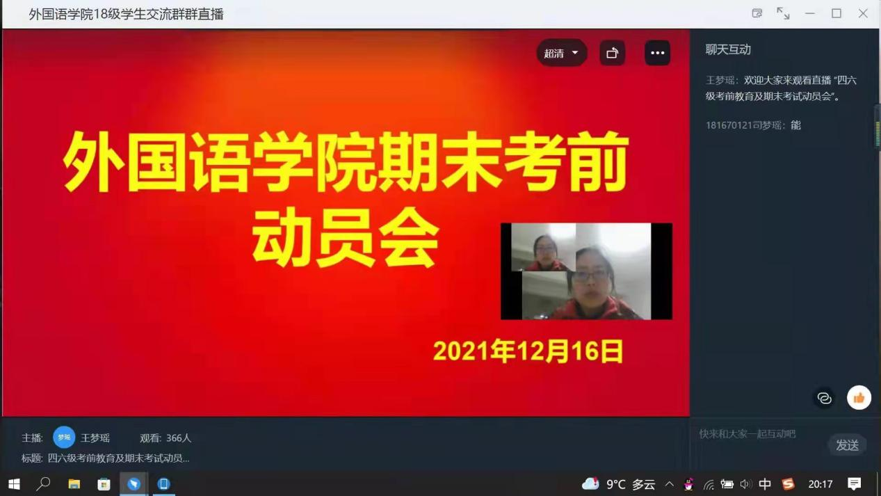 为树立员工诚信为本的道德观念,营造诚实守纪的考试氛围,进一步推进公平公正的考风考纪建设,12月16日,best365足球官网在线上于钉钉群举行了四六级考前教育暨期末考试动员会。会议由best365足球官网副经理贾宏春、辅导员王梦瑶主讲,best365足球官网全体员工都参加了此次会议。