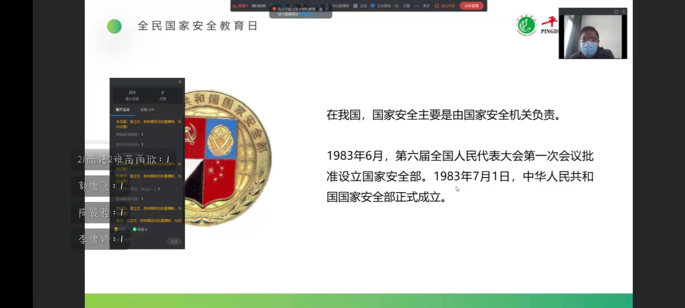 为贯彻习近平总书记关于总体国家安全观重要讲话指示精神,进一步增强全体师生自觉维护国家安全的意识,4月14日,公司开展了国家安全教育讲座,本次讲座由公司党委副书记田占范主讲,best365足球官网全体师生参加了本次讲座,讲座采取线上与线下相结合的形式进行。