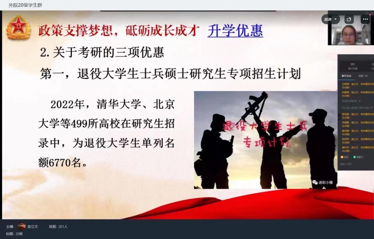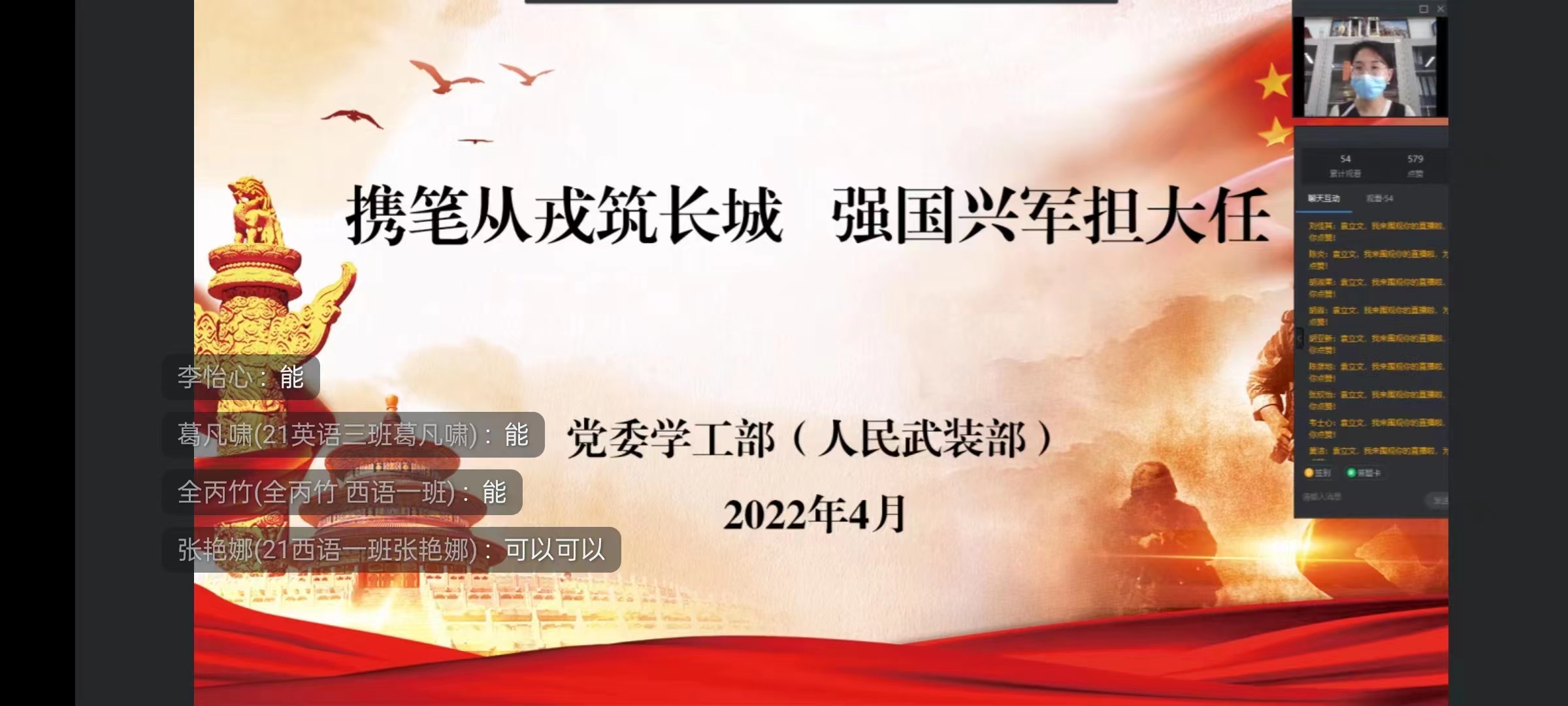 为深入贯彻习近平强军思想,进一步深化新时代老员工对征兵工作重要意义的理解和认识,推动高校征兵宣传工作,激励热血青年学子应征入伍,报效祖国,近期,best365足球官网通过线上线下相结合的方式开展2022年征兵宣讲会。