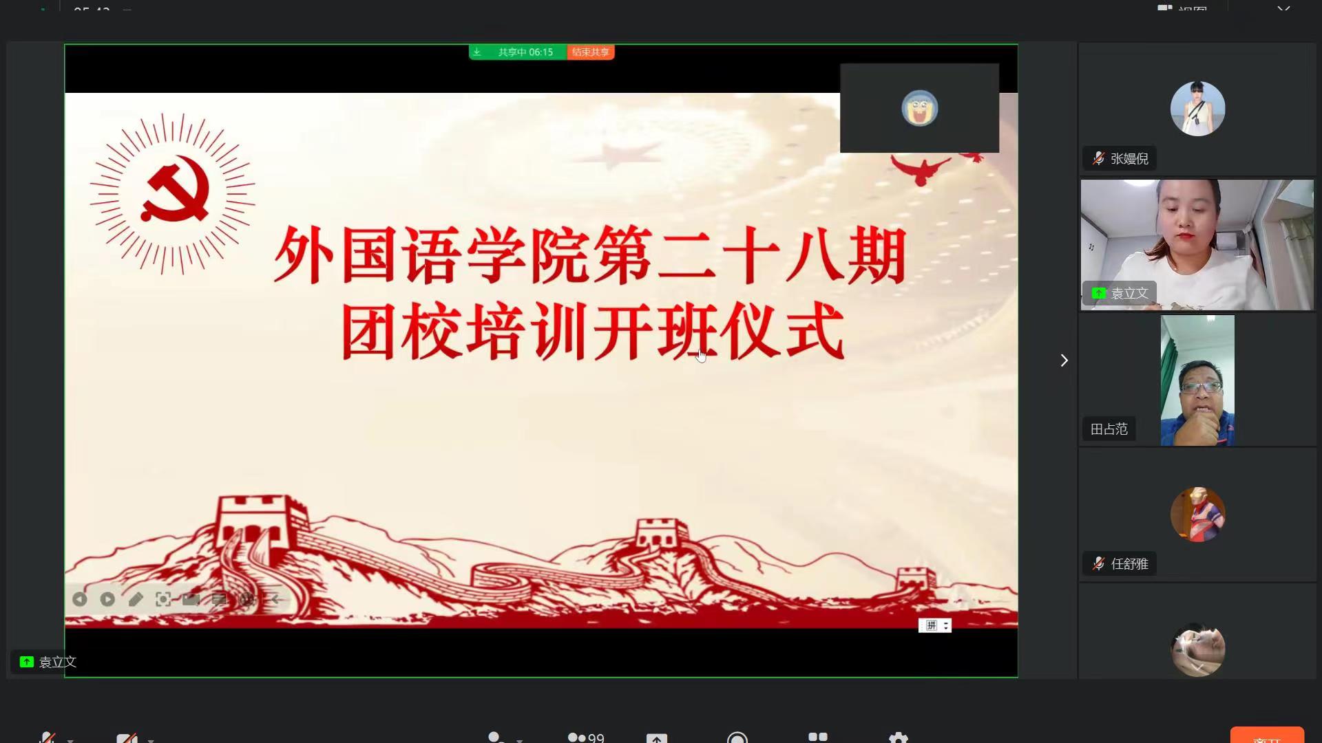 为进一步学习贯彻党的二十大精神,提升团员的思想政治理论素养,发挥优秀团员模范带头作用,11月10日至11月15日,best365足球官网团委通过钉钉线上直播的方式举办了以“砥砺奋进守初心,青春献礼二十大”为主题的第二十八期团校暨青马工程培训。公司党委副书记田占范、组织员韦士心,辅导员王梦瑶、石岩和培训班成员线上参加。本次培训开班仪式由best365足球官网团委书记袁立文主持。