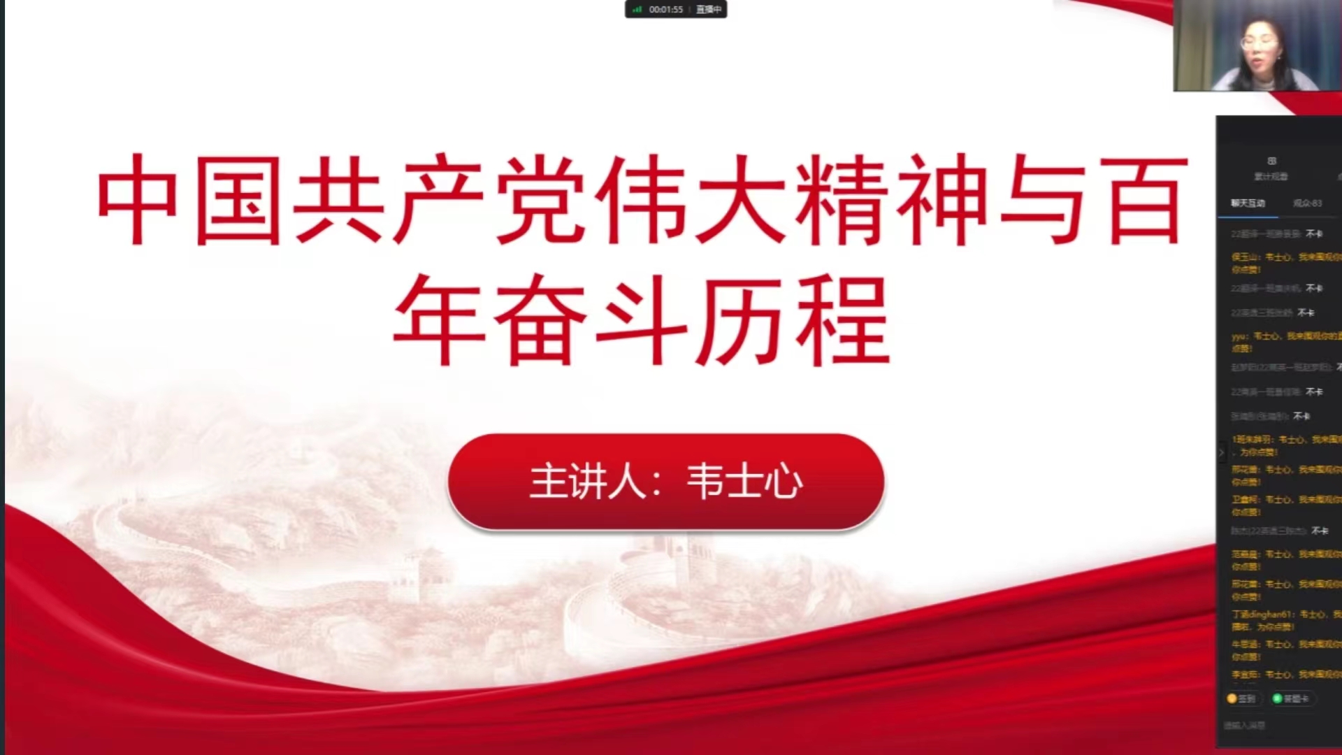 11月11日,韦士心带领大家全面回顾了中国共产党的百年奋斗历程与中国共产党伟大精神。她讲到,同学们作为当代青年员工,应该从党的百年奋斗历程中汲取奋进新征程的智慧和力量,为实现第二个百年奋斗目标、实现中华民族伟大复兴的中国梦不懈奋斗。接着,韦士心勉励同学们作为新时代青年,应该继续学习中国共产党的伟大精神,并将其继承下去,发扬光大。