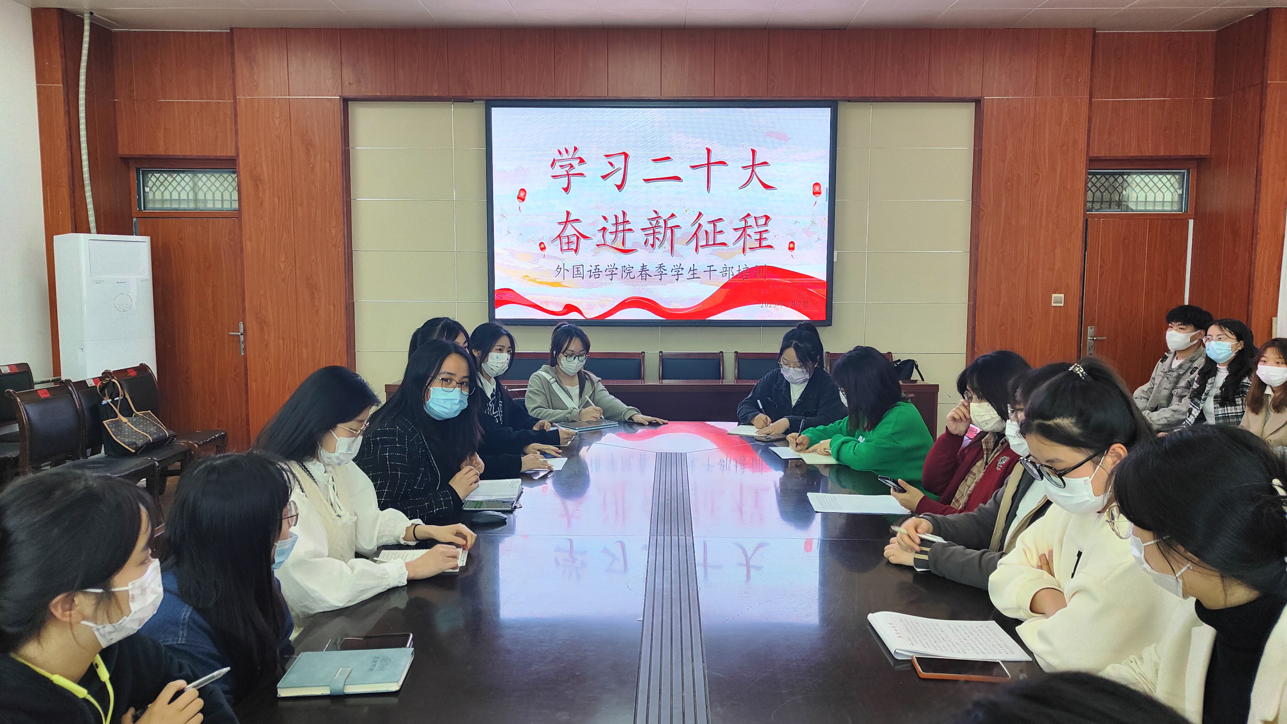 为引领同学们深入领悟党的二十大精神,夯实思想基础,提升员工干部的思想政治素养,3月7日下午,best365足球官网团委于图书馆708举办了以“学习二十大,奋进新征程”为主题的员工干部培训会。本次培训会由best365足球官网团委书记袁立文主讲,best365足球官网团委员工会部分成员参加。