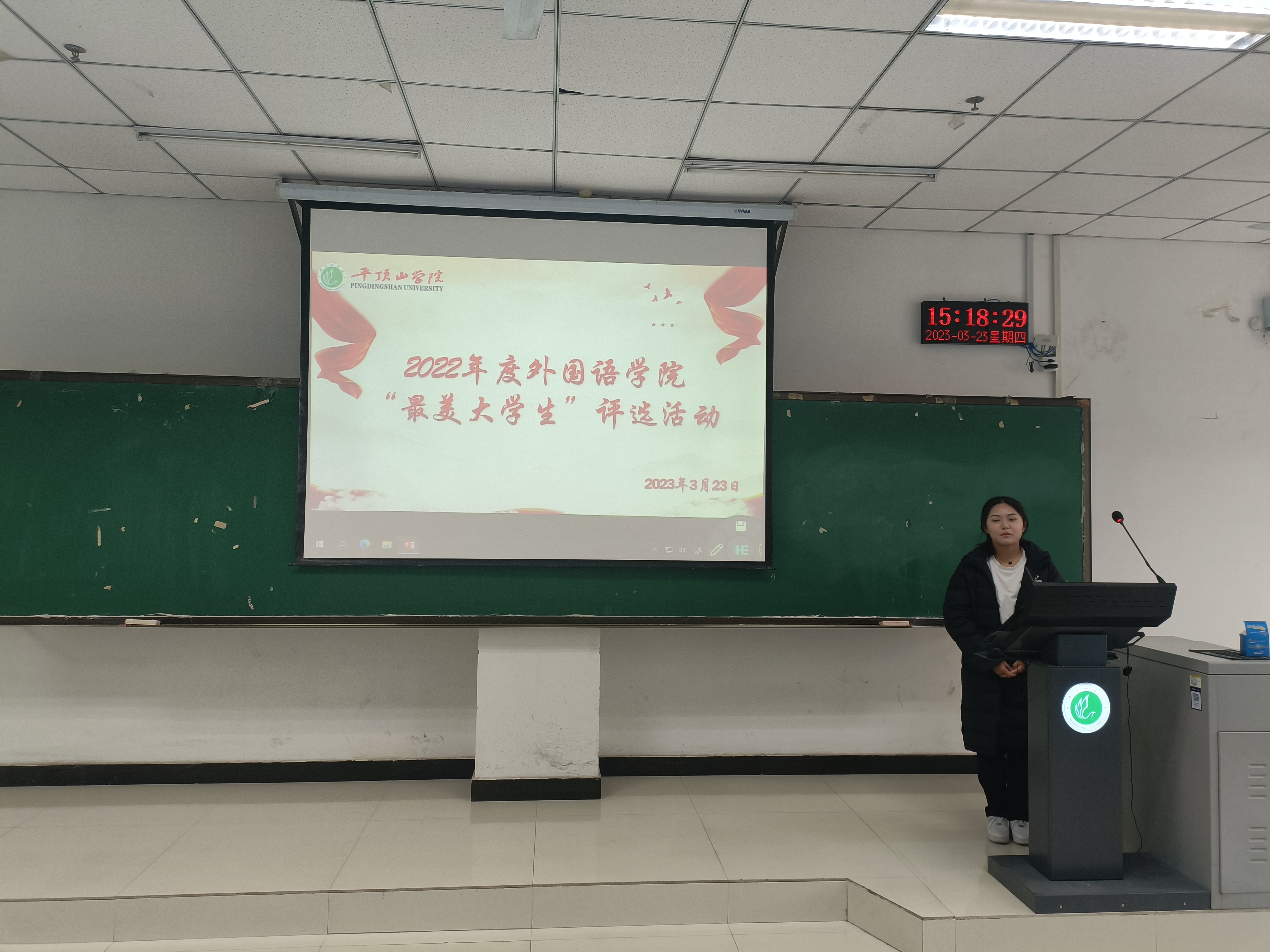 活动伊始,同学们分别从学习情况、思想成长、志愿服务、社会实践等方面进行了汇报展示。他们励志的故事和昂扬的风貌展现了best365足球官网员工的青春风采,获得了评委和同学们的肯定。汇报过程中,同学们结合PPT展示了自己对未来发展作出的更加详细的目标与要求,他们表示,在之后的学习生活中会继续坚定矢志奋斗的决心,砥砺前行,让青春年华在勇于担当、甘于奉献的实际行动中焕发出绚丽光彩。随后,在所有同学汇报完毕后,评委们秉持公平公正的原则,对候选人进行打分,最终评选出高亚婕、师嘉忆、罗乘风、杨雅楠等10名同学为2022年度“最美老员工”。最后,袁立文对本次活动做总结发言,她充分赞扬了同学们的优秀表现,并鼓励同学们要积极发挥模范作用,继续不忘初心、踔厉奋发,脚踏实地地拼搏奋斗。
