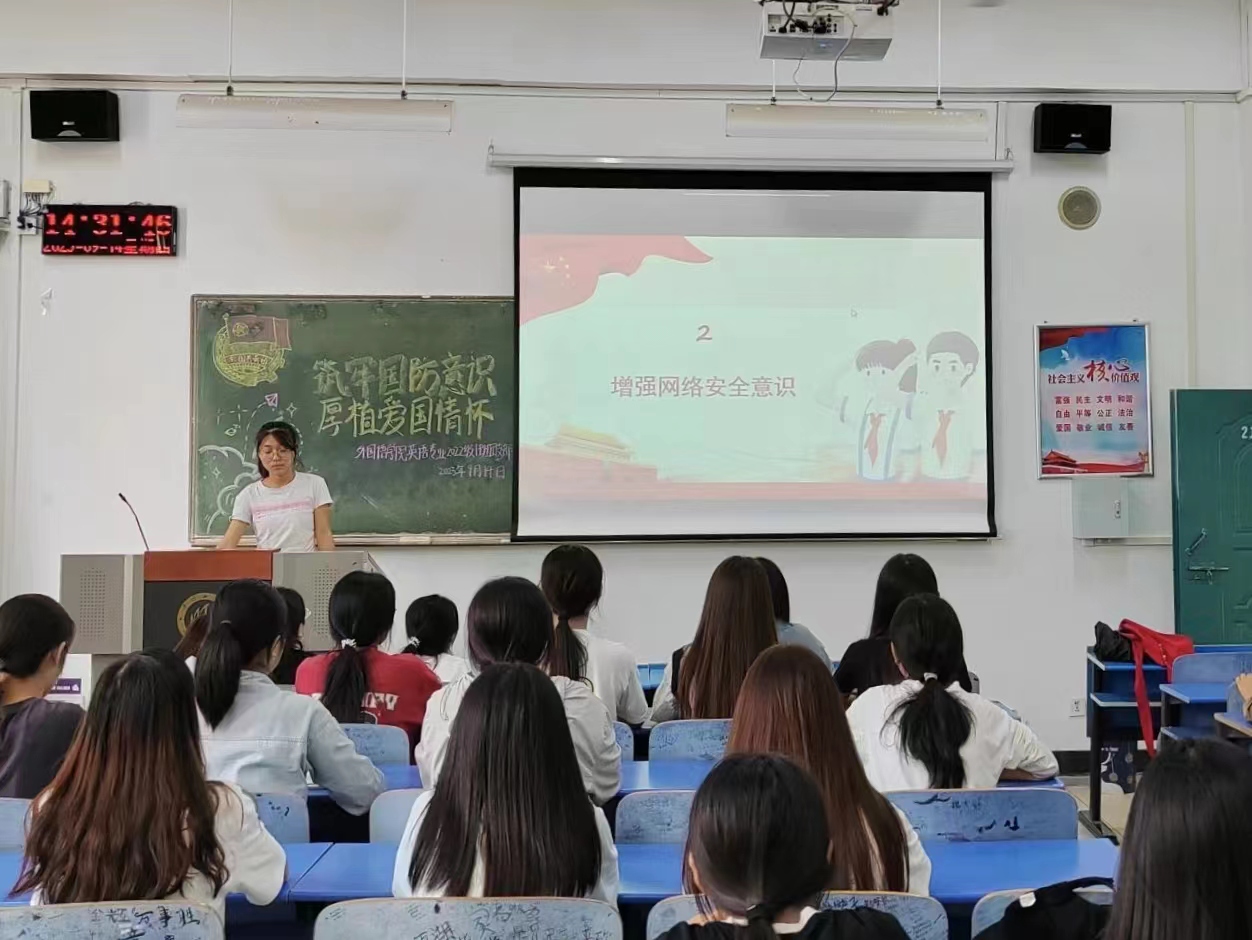 活动伊始,各支部团支书带领同学们齐唱了中国共产主义青年团团歌,与同学们共同观看了2023年度老员工网络素养能力提升大课堂,并向同学们讲解了相关的网络安全知识。接着,各支部团支书组织同学们开展了老员工网络安全知识答题活动,以答题的方式激励同学们以实际行动学习并宣传网络安全知识。最后,各支部团支书结合全民国防教育日特别节目《国防公开课》,向同学们解读了《中华人民共和国国防教育法》和《中华人民共和国国家安全法》,提醒同学们在日常生活中要擦亮自己的眼睛,谨防网络诈骗,如不幸受骗,要学会运用法律知识维护自己的合法权益。同学们积极参与并纷纷表示,在今后的学习与生活中,会将网络安全知识与实际生活相结合,并灵活应用于学习与日常生活中,努力为全面建设社会主义现代化国家不懈奋斗。