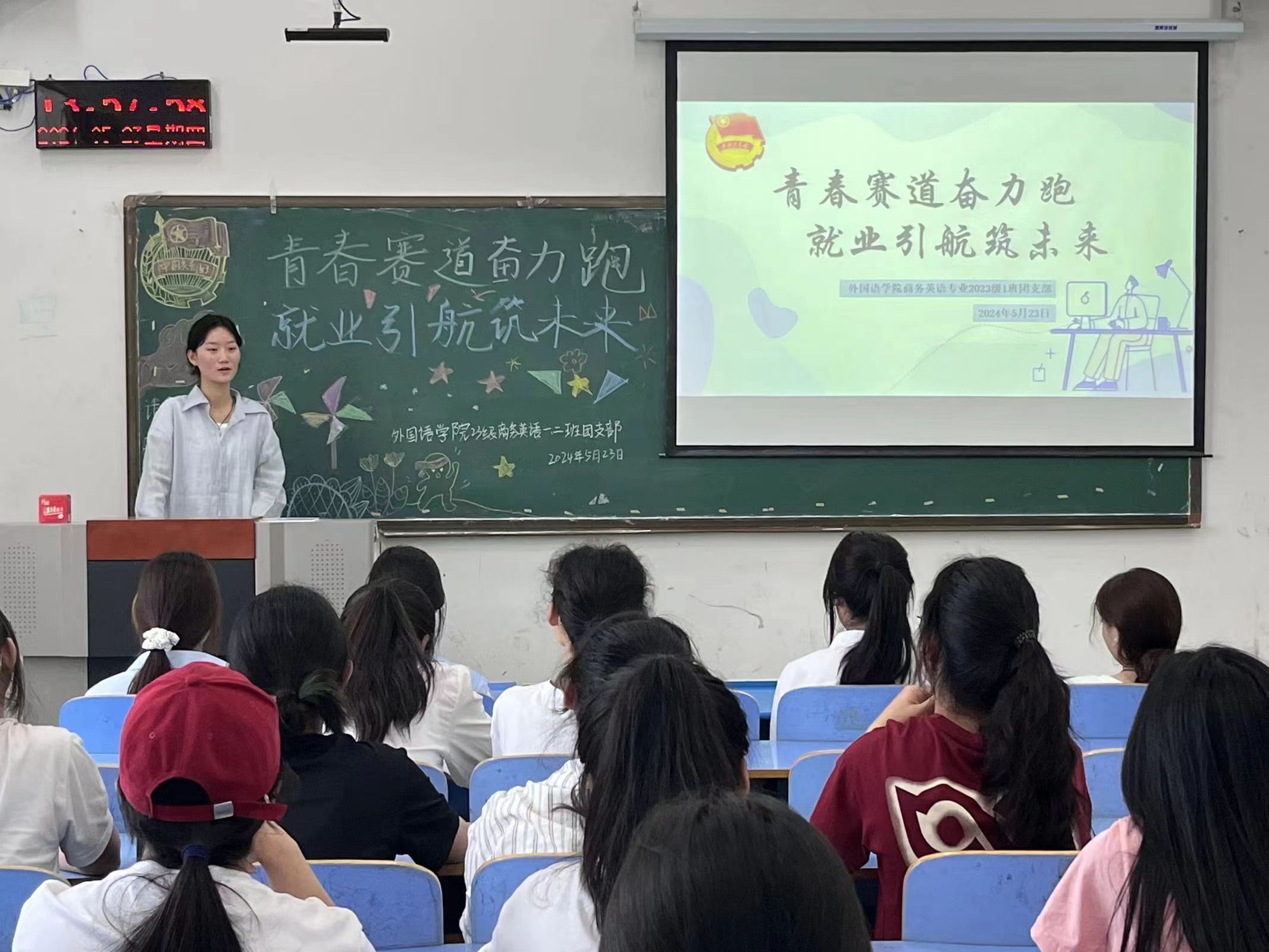 活动伊始,各支部团支书带领支部成员齐唱了中国共产主义青年团团歌,并与同学们共同了解了“三支一扶”的申请条件、选拔要求与流程,帮助同学们深化对基层就业政策的理解,激励同学们深刻理解扎根基层、奉献青春的价值意义。接着,各支部团支书组织同学们观看了“互联网+就业指导”公益直播课,并带领全体支部成员共同学习了“老员工就业引航计划”、“老员工志愿服务西部计划”等国家就业扶持政策,他们讲到,国家对于积极参与基层教育的老员工出台了一系列的就业保障政策,希望同学们毕业后可以根据自身的情况和意愿积极报名参加。最后,各支部团支书组织支部成员学习了人民网发布的“打开‘就业手册’:拓展就业选择,新职业成就新生活”这一篇目,并鼓励同学们积极发表自己的感悟,同学们纷纷表示,在今后的学习与生活中,将会加深自己对本专业就业方向及就业市场形势等相关内容的了解,树立正确的就业观,书写新时代青年人新的就业华章。