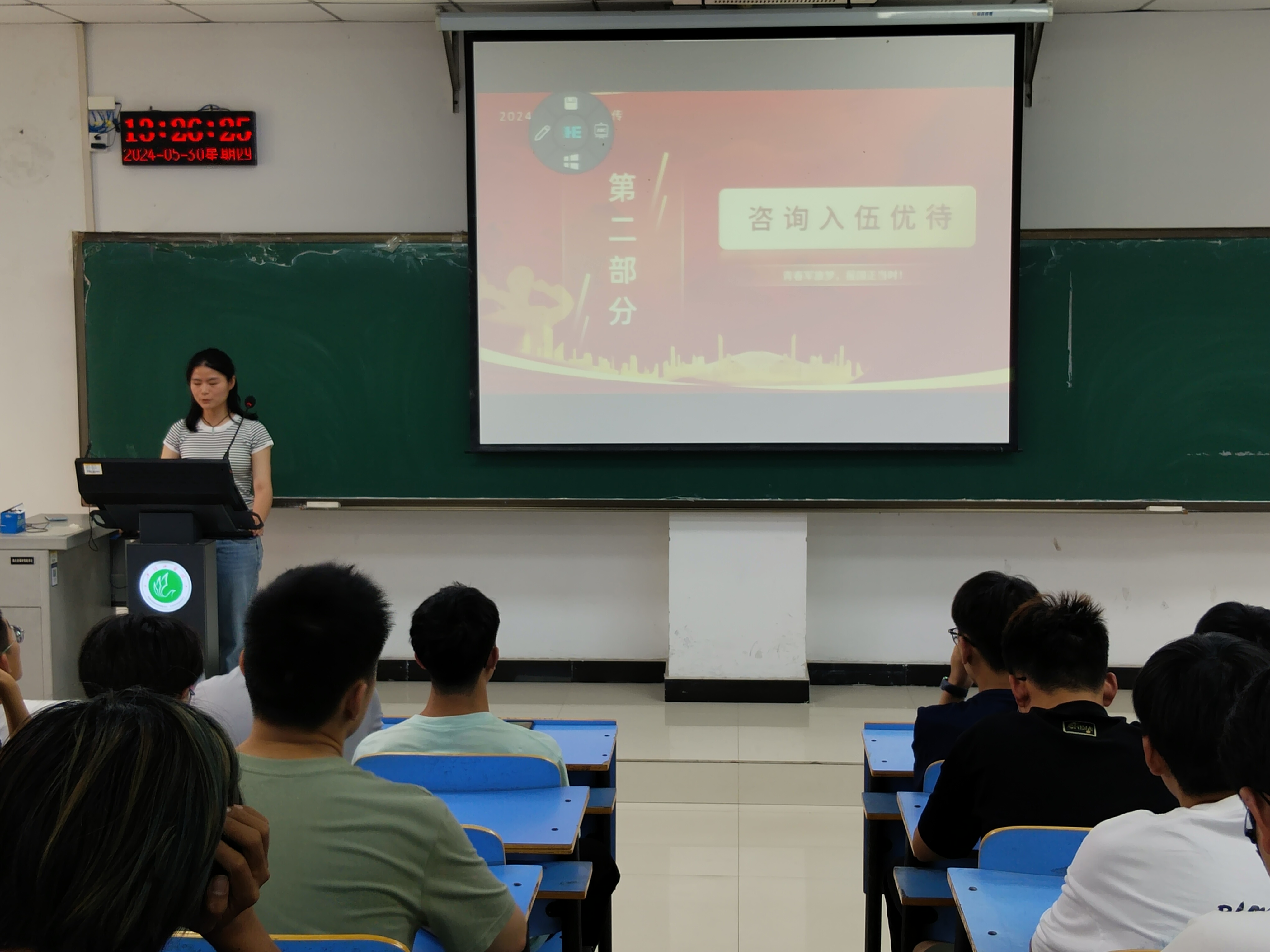 为深入学习贯彻习近平强军思想,进一步深化老员工对征兵工作的理解和认识,激励更多的员工主动参军入伍,5月30日下午,best365足球官网于图书馆L716召开了2024年春季征兵宣讲会。本次宣讲会由2021级辅导员韦士心主持,best365足球官网退役老员工王一凡、谢娣主讲,best365足球官网部分员工参加。