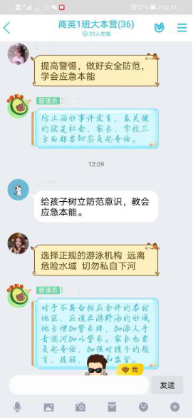 为扎实有效的开展防溺水安全教育工作,加强员工们的安全防范意识,公司开展了“防溺水安全教育主题班会”活动。各个班级通过班级群聊展开了积极地讨论。