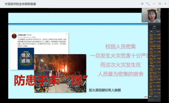 为扎实有效的开展防火安全教育工作,增强同学们的安全防范意识,全面普及校园防火安全常识,9月18日,best365足球官网通过钉钉视频会议召开了防火安全教育会议。会议由韦士心老师主讲,best365足球官网全体员工参加了此次会议。