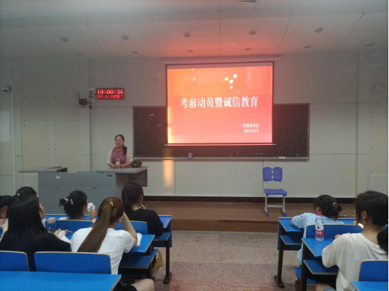 会议伊始,贾宏春首先从考试的目的入手,告诉同学们考试的目的主要有两点:一是对教师、员工的教学活动情况进行检验;二是为了根据员工考试水平和员工考试中出现的问题,对校内教学提供改革意见,制定更好的教学方案。她强调:只有考试结果公正,才能保证学业评价的真实可靠,才能保证教学改革的实施落实。叮嘱同学们要严格遵守考纪考规,诚信考试,保证考试的公平公正。接着,贾宏春从考试作弊的心理,考试作弊的原因,考试作弊产生的严重后果三个方面进行了解读,让同学们明白了诚信考试的重要性,理解了“诚信”对自身发展的重要意义。最后,贾宏春希望同学们做好考前复习,及时调整消极情绪,保持自信,以正常的心态应对考试,也祝同学们在期末考试中取得优秀的成绩。