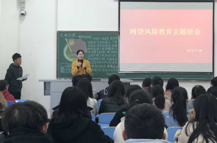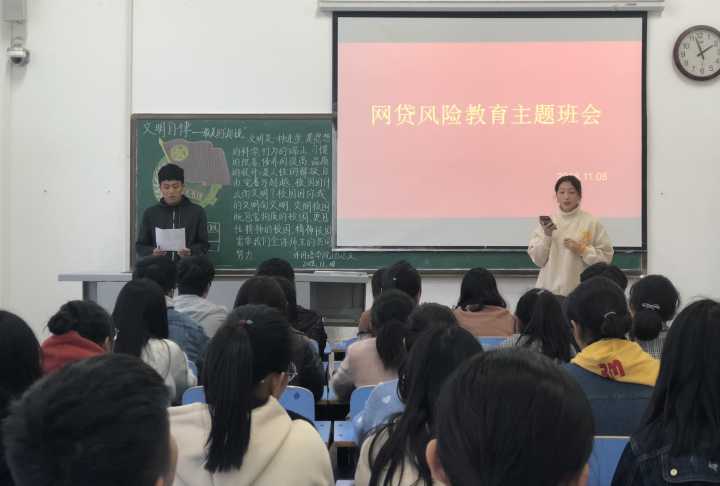 为了消除校园不良网络贷款引发的借贷隐患和债务悲剧的发生,加强社会主义核心价值观教育,营造崇尚节约的校园文化环境,帮助同学们养成文明、健康的生活习惯,提高安全防范意识,自觉远离网络借贷行为,规避盲目消费风险,11月8日下午,best365足球官网公司全体行政班级开展了以“理性消费,拒绝网贷”为主题的班会,院学工办主任薛天桥、辅导员韦士心参与了此次班会。