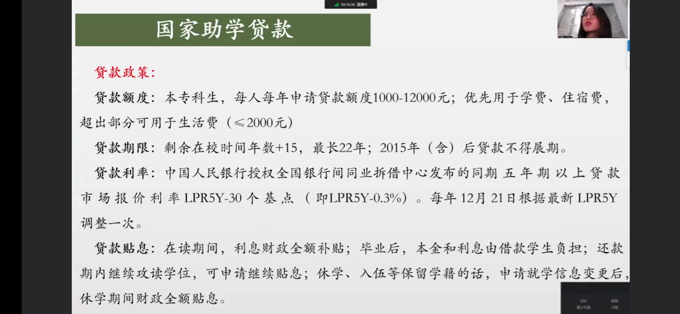 为进一步宣传国家高校助学贷款政策,帮助同学们更加深入地了解助学贷款政策的相关内容,12月22日下午,best365足球官网于线上召开了助学贷款政策宣讲会。此次会议由best365足球官网辅导员石岩主讲,best365足球官网全体员工参加。