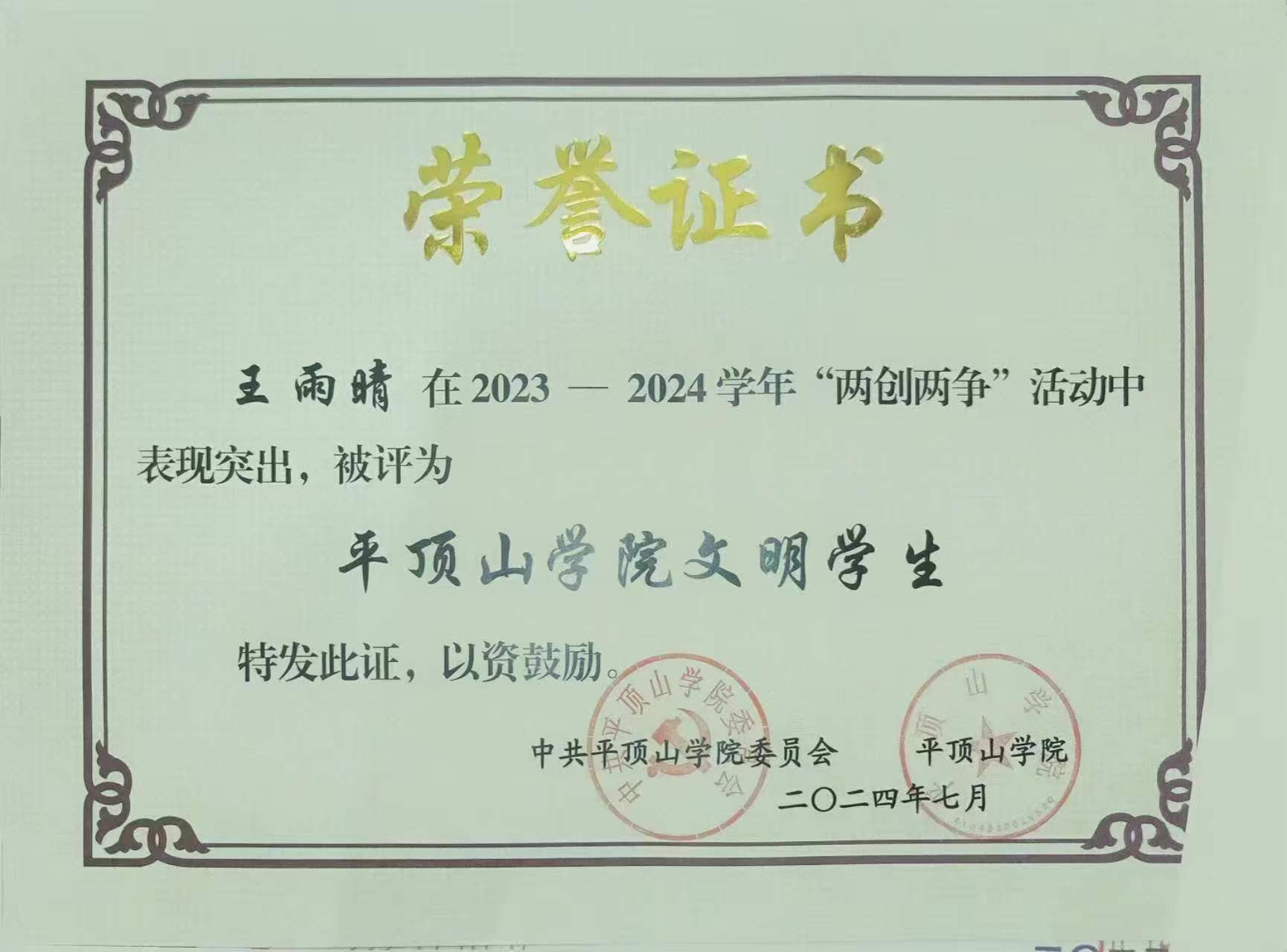 在专业学习过程中,王雨晴踏实认真,不断督促自己夯实专业知识,提高专业技能,在完成课程学习任务的同时,还踊跃报名参加与所学专业相关的比赛及其他等级考试,多方面提高自己的综合能力水平。