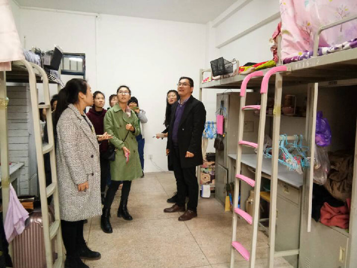 11月16日13时许,best365足球官网团总支书记、学工办主任薛天桥老师、17级辅导员韦士心老师及公司员工会宿管部员工干部一行8人,按照公司开展的第七届冬季宿舍安全活动月相关要求,到公司各寝室检查员工使用电器、私拉电线、宿舍内吸烟和明火、晚归外宿及卫生情况等。