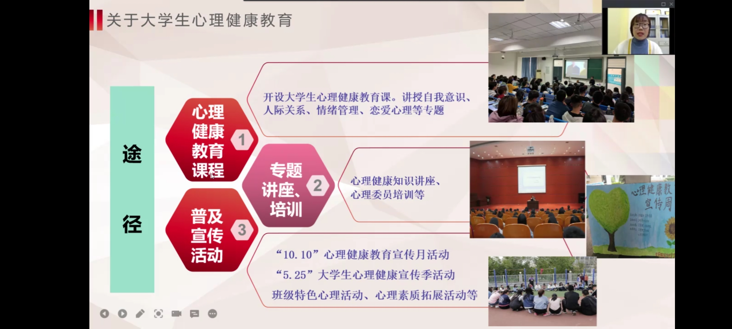 培训伊始,张孟曼首先向同学们介绍了公司公司、公司、班级及宿舍四位一体的心理健康教育服务体系,并向同学们介绍了公司老员工心理健康教育与咨询中心。接着,张孟曼从“班里心理委员角色”、“如何做好心理委员工作”、“心理委员的自我防护”等三个方面为主要内容展开了本次心理健康培训。培训中,张孟曼指明了心理委员在班中所担任的角色以及主要任务与职责,并向同学们分享了公司以往所开展的心理健康教育活动。最后,张孟曼对老员工心理危机干预知识技能进行了重点讲解和培训。