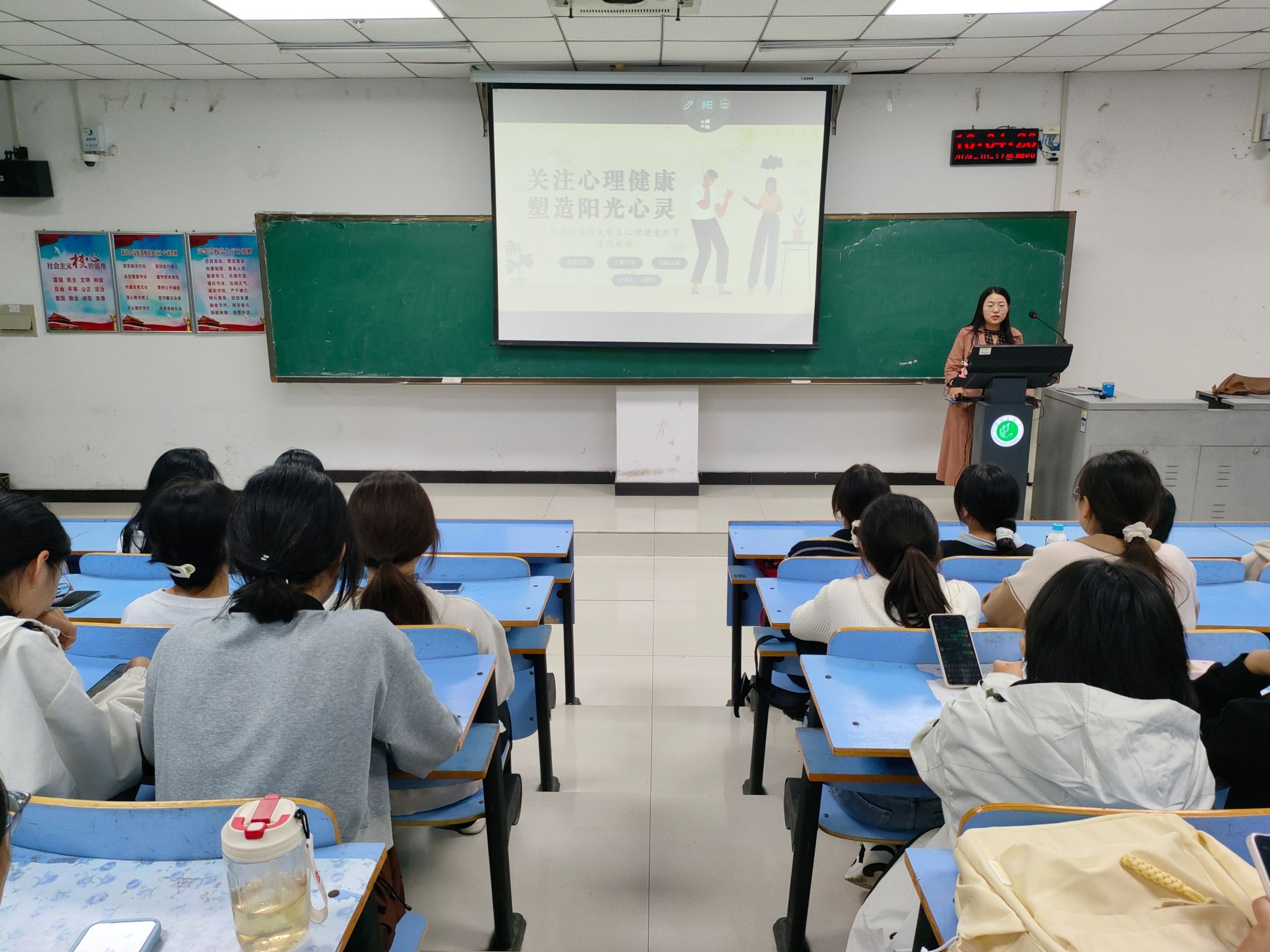 为帮助同学们树立科学的心理健康观念,提升心理健康水平,促进同学们身心健康全面发展,10月17日下午,best365足球官网于图书馆L701召开了以“关注心理健康,塑造阳光心灵”为主题的心理健康教育班会。本次班会由best365足球官网辅导员王梦瑶主讲,2024级全体员工参加。