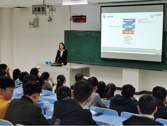 招聘会伊始,同学们首先在一段介绍河南五建集团的短片中初步了解了该公司的起源和发展。接着,集团人力资源部负责人从公司招聘需求、职员培养方式、职员激励体系三大方面对公司情况进行了详细地介绍,使同学们进一步了解该公司的招聘要求和发展情况。随后,公司负责人又通过面对面交流的方式,对公司的企业文化、人才理念、福利待遇、薪资构成进行了介绍。在谈到公司人才理念和福利待遇时,负责人表示,集团秉承“以工作业绩和综合能力论人才”的用人理念,重视人才的引进、培养、考核及选用,竭力为人才成长创造各种条件。同时,公司也为职工足额缴纳“五险一金”,提供各类免费培训,使同学们感受到了公司的人文关怀。招聘会上,同学们也向公司负责人询问了招聘流程、管理方式、职工岗位等方面的问题,通过交流,同学们更加清楚地了解了应聘的相关事宜,减少了择业的盲目性。