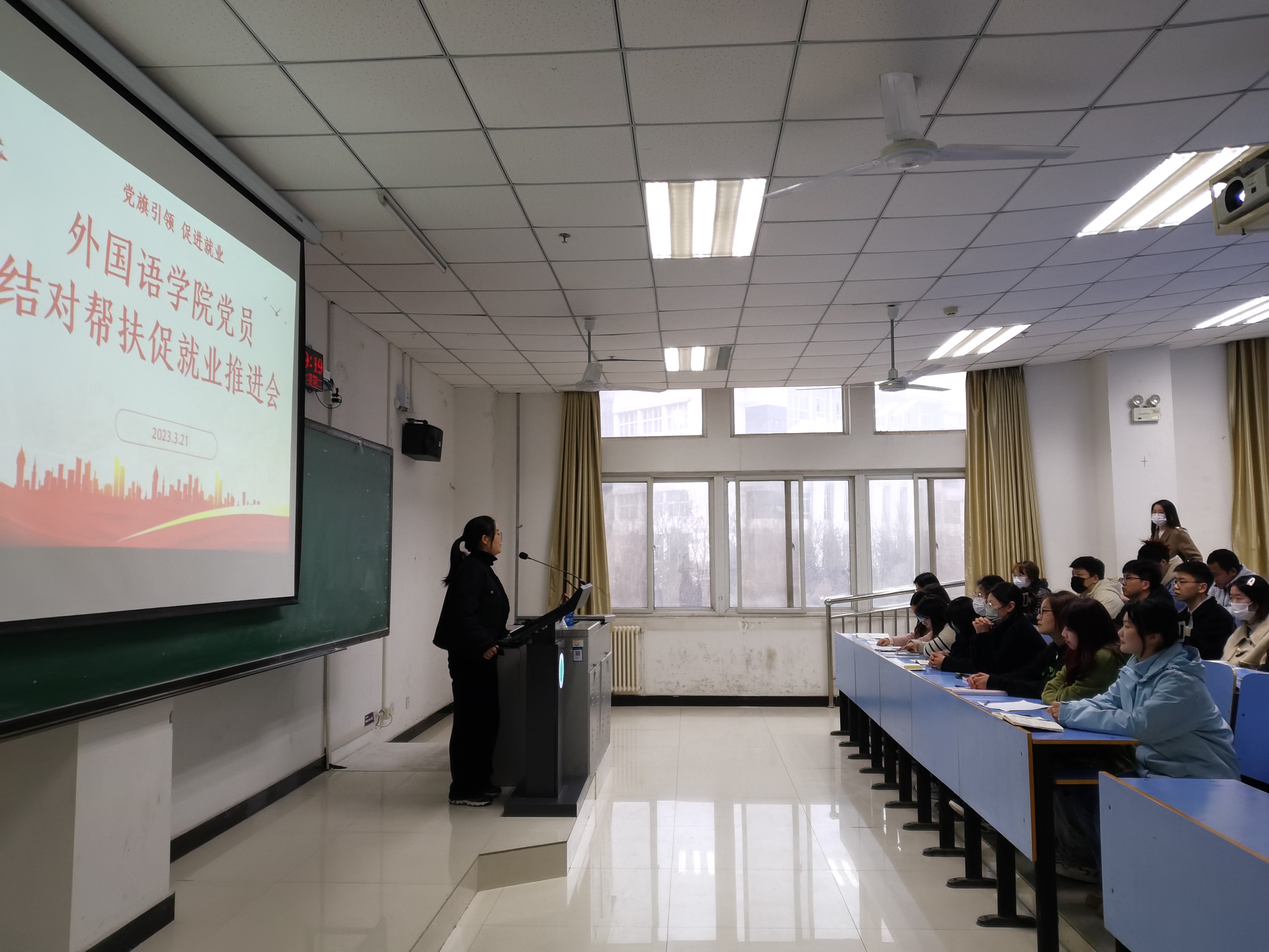 2022届毕业生辅导员王梦瑶跟党员分享了学长学姐的就业经历、考研考公考编等情况。希望大家不要等不要拖,改变缓就业、懒就业的思想。
