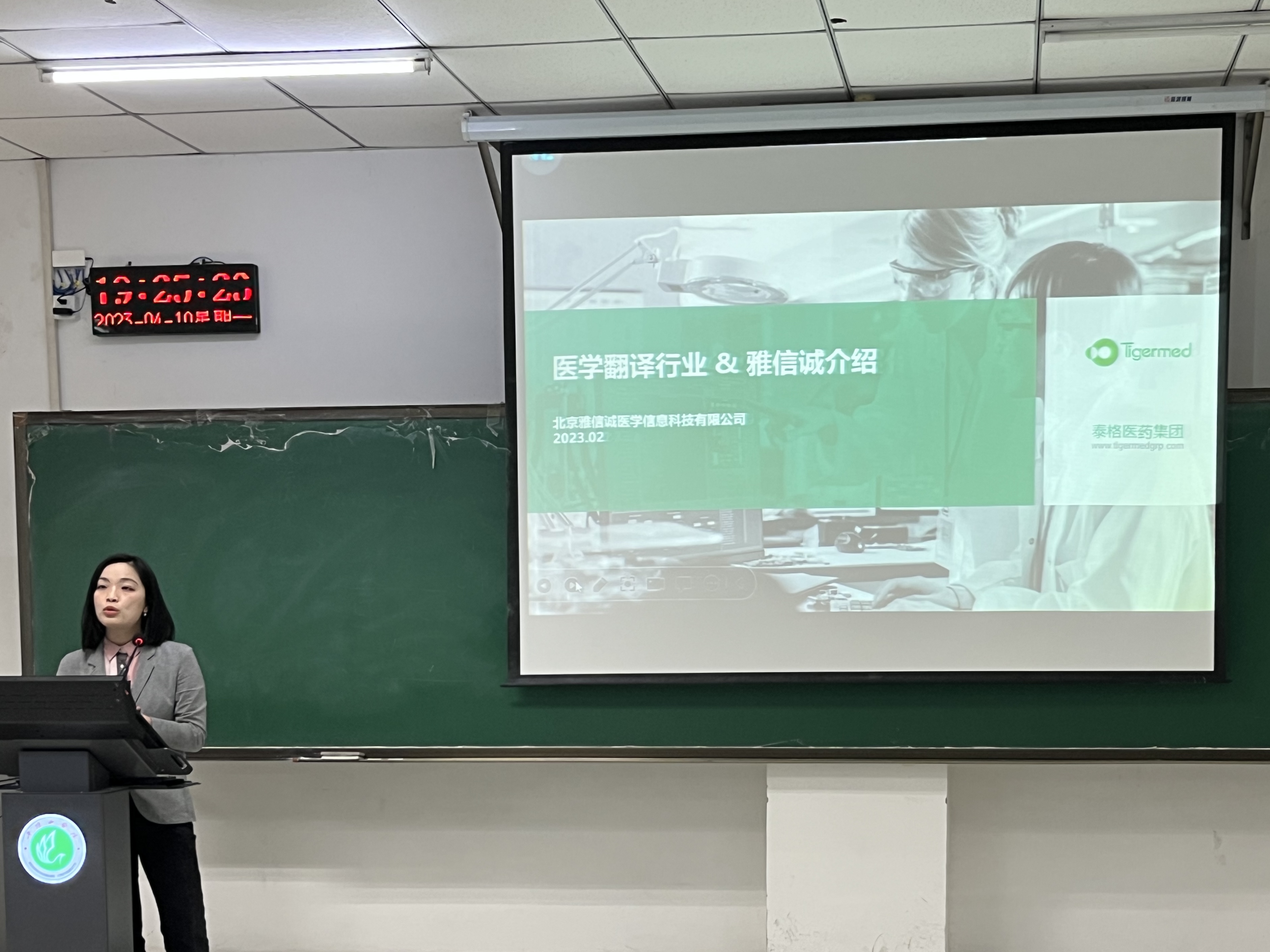 宣讲会伊始,陈婕介绍了公司的基本情况及涉及的业务范围,她讲到,北京雅信诚医学翻译公司专注于生命科学领域的医学翻译,是服务于跨国医药企业的专业翻译公司,目前规模宏大,国内业务繁多,不断拓展海外市场,逐渐走向国际。然后,陈婕向同学们深入阐述了医学翻译行业的重要性,并从翻译市场现状、医学翻译公司的发展现状、翻译技术发展历程,以及医学翻译的流程与团队分别展开详细介绍,让同学们对翻译市场的现状与前景有了更深入的了解。接着,丁静从应聘方式、团队及环境氛围三个方面向同学们介绍了公司热招岗位和技能要求。她提到,部分岗位对英语水平和计算机水平有硬性要求,因此,同学们要找准自己的定位,根据自身能力及性格选择工作岗位。随后,陈婕和丁静鼓励大家积极参与北京雅信诚医学翻译公司举办的比赛,锻炼技能。最后,同学们纷纷表示,此次宣讲会增进了大家对医学翻译行业形势和市场的了解,会努力找准自身定位,充分准备就业。
