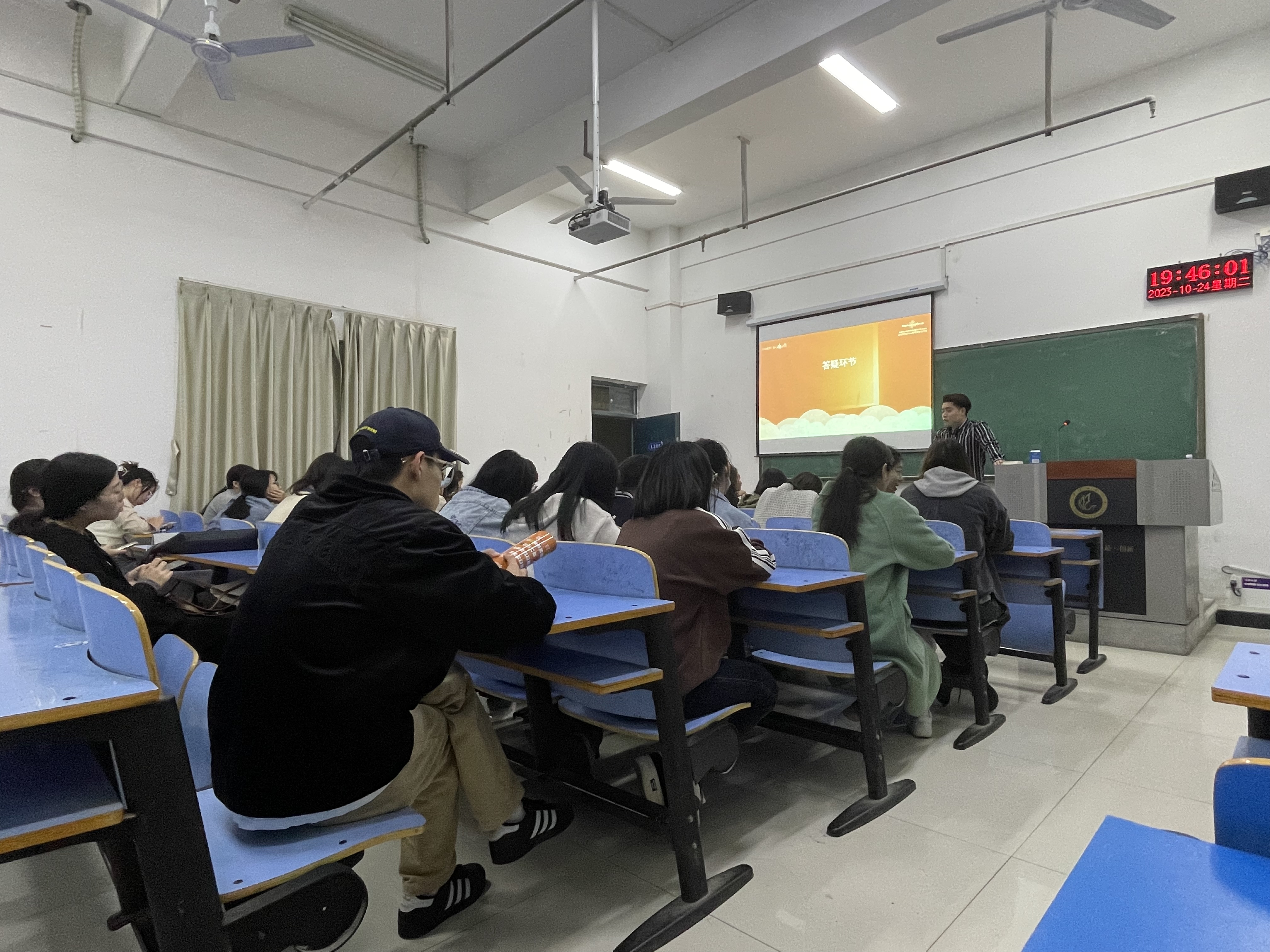 宣讲会伊始,姜佳淇从几个方面对公司的基本情况进行了详细的全面介绍。在企业建设方面,姜佳淇讲到,珍岛集团拥有丰富的就业地点、良好的工作环境和完备的辅助设施,能够为同学们提供更美好的职场生活。接着,姜佳淇就公司目前的招聘岗位、福利待遇和晋升途径进行了简单说明。他提到,在招岗位的晋升空间和途径都很乐观,同学们可以综合考虑个人意愿和自身实际情况进行岗位选择。最后,同学们积极提出问题,与用人单位面对面进行沟通交流。用人单位也针对同学们提出的问题进行了解答,并鼓励同学们提前规划未来发展,抓住校招的宝贵机会。