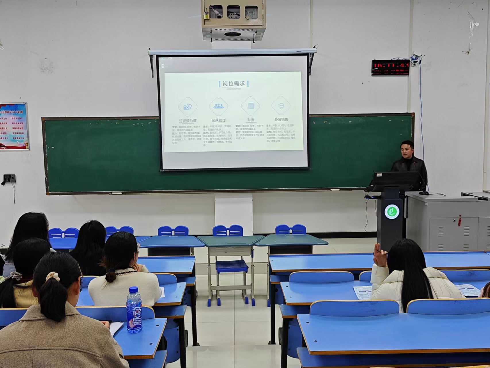 宣讲会伊始,海楠从公司的地理位置、运营状况、招聘岗位及福利待遇四个方面展开,对公司的基本情况向同学们进行了详细的介绍。在招聘岗位方面,海楠讲到,由于公司海外市场拓展的需要,目前公司对外语人才的需求量大,希望同学们可以综合考虑各方面因素,找准自己的定位,根据自身情况选择合适的岗位。接着,海楠鼓励同学们积极提出自己的疑问,同时海楠也细心解答同学们咨询的问题,帮助同学们完善对公司在招岗位的认识,鼓励同学们确认初步就业意向。会后,同学们纷纷表示,在投递简历前,会持续了解该公司的相关需求和发展方向,分析自身的优点与不足,不断提高自身竞争力,提前规划未来发展,为就业做好充分准备。