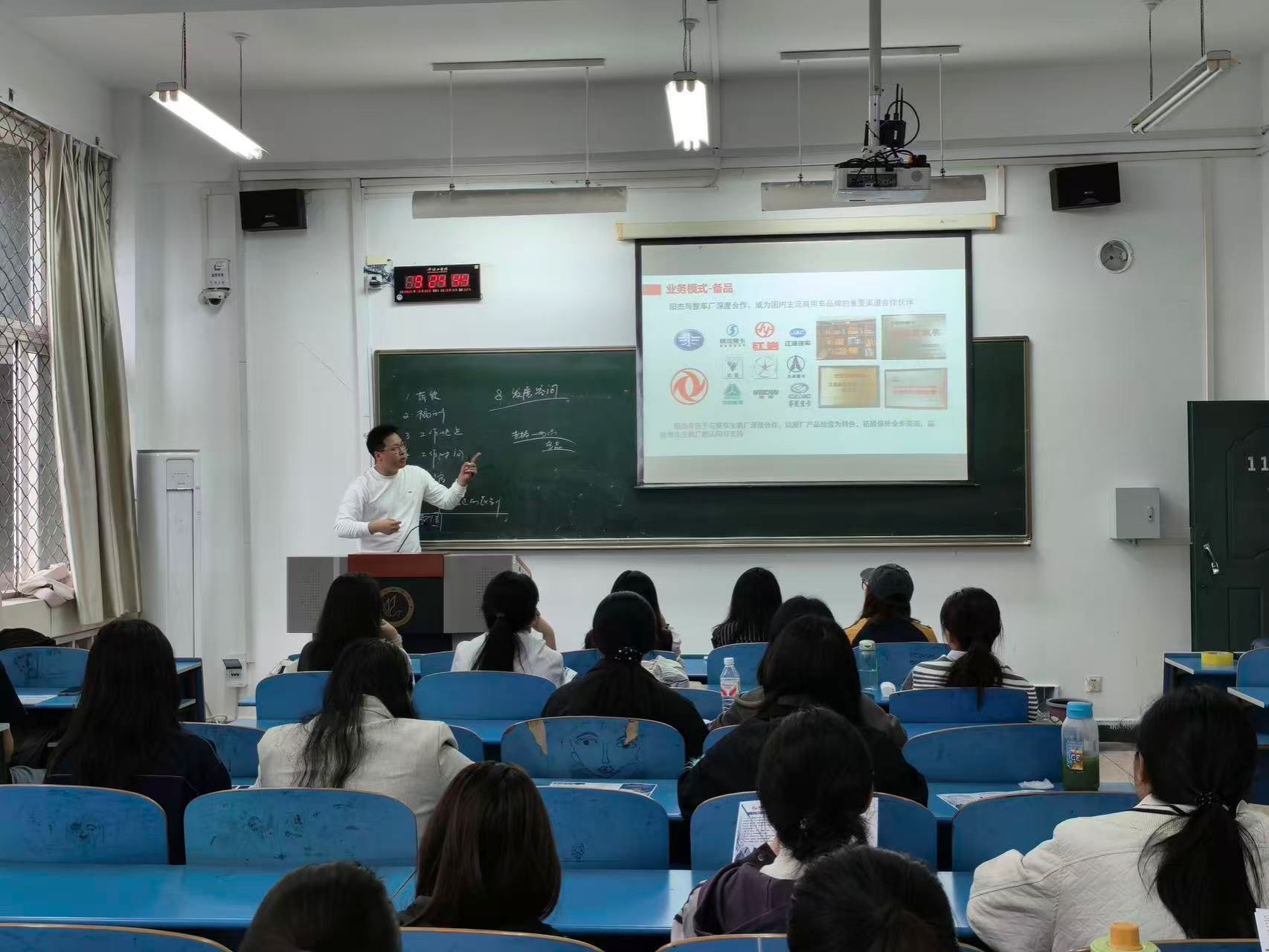 首先,孟健康向同学们详细介绍了公司的基本情况,他表示,公司是国内商用车保险事故配件流通行业的领先服务商,总部位于上海长宁区,业务涵盖海外配件、保险事故配件两大核心板块,以及备品中心库、数据、配套三大重点业务,发展前景十分广阔。随后,孟健康从公司的全球服务网络布局、招聘岗位及福利待遇等方面展开,对公司进行了全面的介绍。就招聘岗位方面,孟健康讲到,由于公司海外市场拓展的需要,目前公司对外语人才的需求量大,希望同学们可以综合考虑各方面因素,根据自身情况积极投递简历。接着,孟健康鼓励同学们积极提出自己的疑问,并耐心解答了同学们咨询的问题,帮助同学们完善对公司在招岗位的认识。最后,同学们积极投递简历,现场求职气氛热烈。